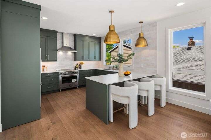 Situated just moments from the Arboretum’s leafy trails, this new home by Gerry Homes pairs refined style with ease. Sun-washed living and dining flow across wide-plank hardwoods into a chef’s kitchen outfitted with a Bertazzoni induction range, and an expansive kitchen island for prep and conversation. Three generous bedrooms including a serene primary retreat with walk-in closet and a spa-like bath with heated floors. Energy-efficient mini-split heating and cooling keep every level comfortable year-round, and attached EV-ready garage makes parking seamless. Enjoy the rooftop deck perched above Madison Valley’s treetops. Easy access to UW, downtown, eastside and the Arboretum! An inviting blend of luxury and location.