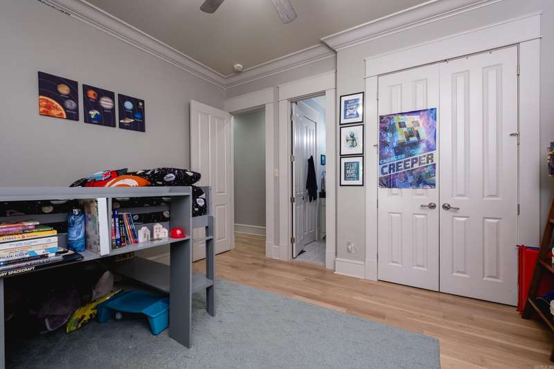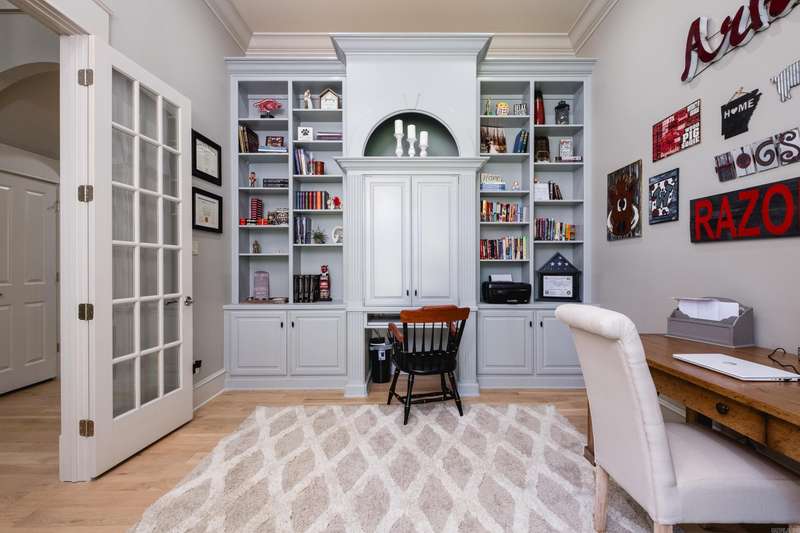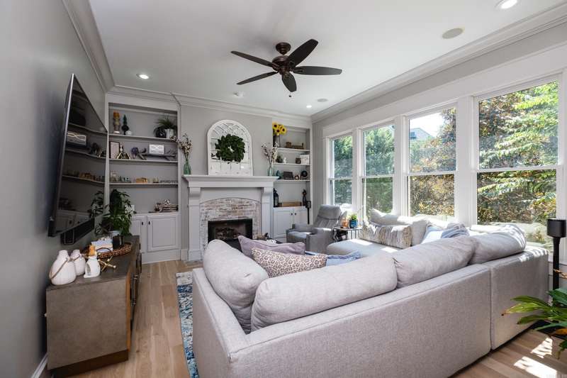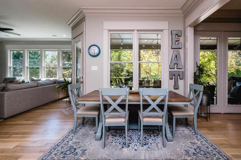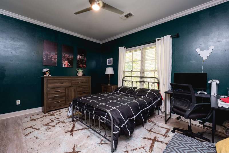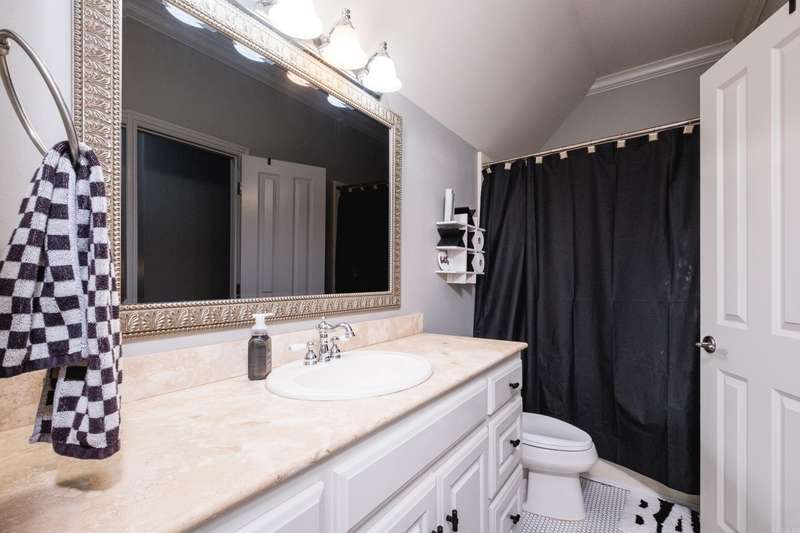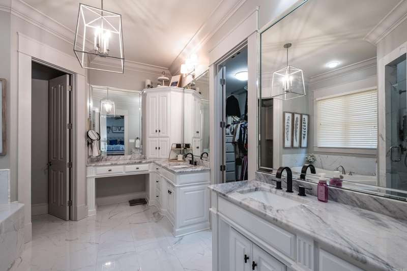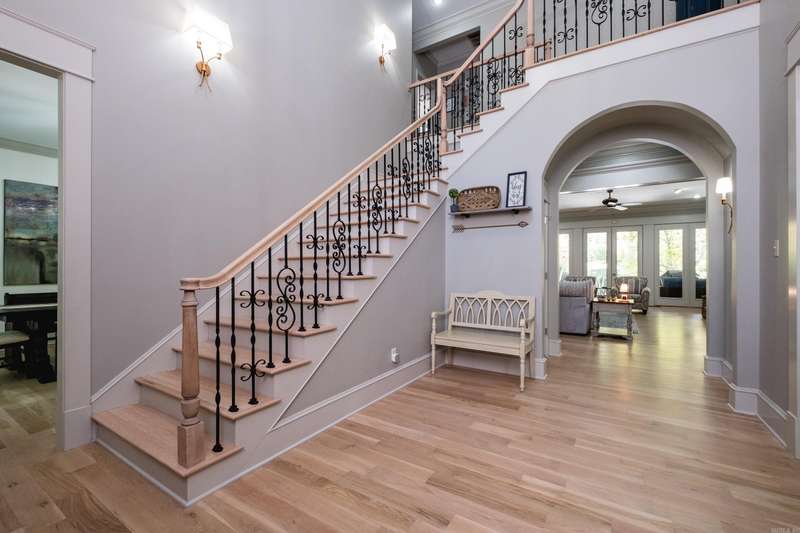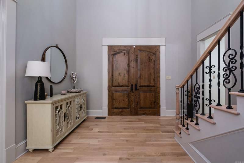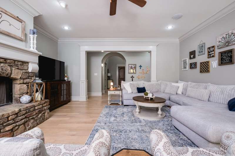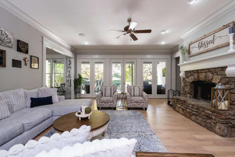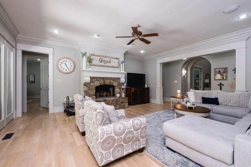 Stunning home with thoughtful updates and exceptional spaces for both everyday living and entertaining. A welcoming two story foyer opens to gorgeous, newly refinished hardwood floors throughout and fresh interior and exterior paint. The impressive great room features a striking rock fireplace and a wall of windows overlooking the covered porch and backyard. The fantastic kitchen offers new double ovens, abundant storage and counters. Formal and informal dining areas, as well as a cozy hearth room is perfect for gathering. The main level also includes a spacious primary suite with a spa bath featuring heated tile floors, Office/Study plus a guest bedroom suite with bath access from both the bedroom and hall, laundry and half bath. Upstairs are four large bedrooms, two connected by a shared bath and two positioned near a separate hall bath, along with a theater room featuring a separate snack and seating area and an additional space ideal for storage or a home gym. The backyard oasis is designed for year round enjoyment with a sparkling pool, relaxing hot tub, and covered outdoor living area. Additional features include a whole-house generator and a three-car garage. Come see!