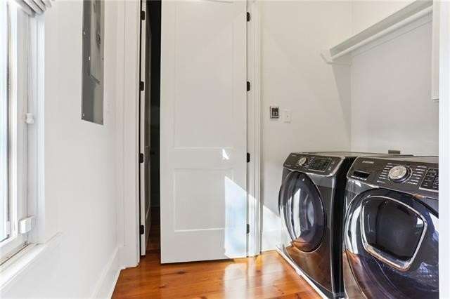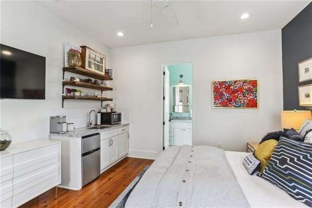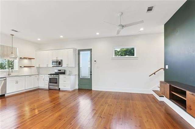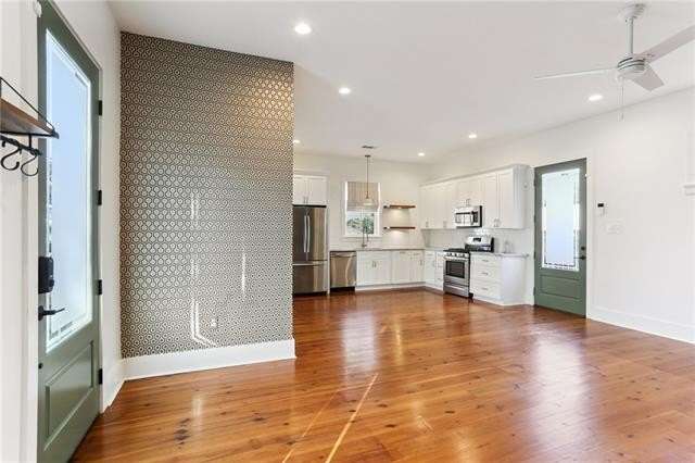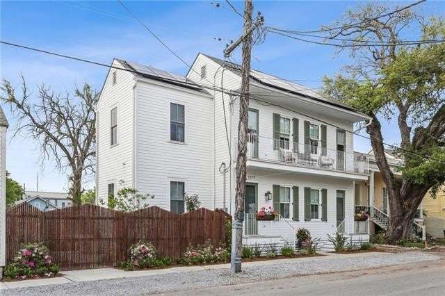 SPECIAL FINANCING w/ $6,000 LENDER CREDIT AVAILABLE! Gorgeous 2020 new build, packed with charming details, flexible floorplan, gated off-street parking, and upgrades for green living, just off historic Esplanade Avenue. Great curb appeal and street presence grab your attention, with lush landscaping and dual front stoops, welcoming you into the warm living spaces. A spacious living room with accent wall and custom-built cypress console, flanked by an open kitchen and dining area, flowing seamlessly together for easy entertainment and everyday living. The efficient kitchen boasts plentiful cabinet and counter space, open shelving, beautiful marble countertops, and stainless Samsung appliance package. Also on the first floor is a quaint powder room, plus a full mother-in-law / guest suite with kitchenette, sizable bedroom, full bath, and its own entrance from the street! Alternatively, this suite could be used as a private home office, future rental income, or a first floor primary. Upstairs there are two additional bedroom suites, convenient laundry facilities, and balcony access for enjoying treetop and downtown skyline views. The primary suite is a true escape with an enormous bedroom fit for a king (bed), finished with designer wallpaper and soothing colors, custom blackout window treatments, and plenty of room for seating. The primary bath and closet are equally as impressive, with dual vanities, walk-in shower, and generous storage. But wait, that's not all! This gem can also be sold with an eco friendly EV charging station, solar power generation system, PLUS whole-home battery backup generator alternative; offering peace of mind during and after storms or Entergy power-outages, and reducing your carbon footprint at the same time. All of this, conveniently located within a few minutes of the Fairgrounds, City Park, Bayou St. John, and the French Quarter!