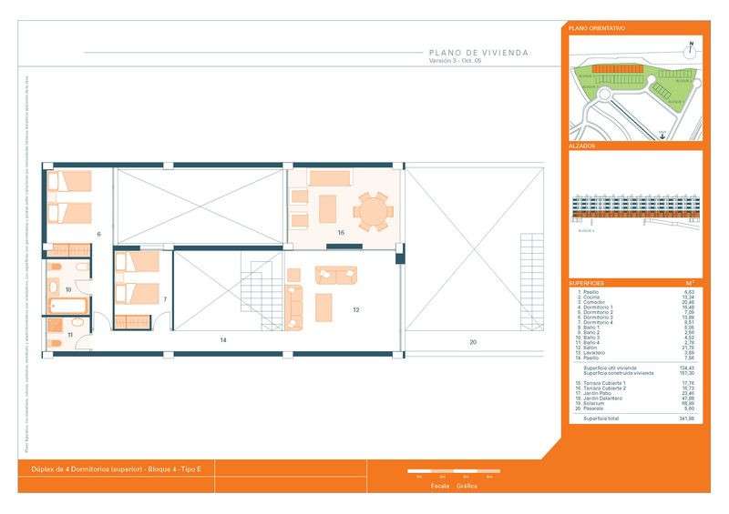 Attractive modern duplex apartments full of design features and extras in a well-built new development less than 800m from the beaches of Playetes de Bellver. Set within a gated community with lawns, gardens and swimming pools, the luxury duplex apartments cover a built area of 157.30m2, with four bedrooms and four modern bathrooms distributed over two floors. The large lounge and dining room enjoys open views to the sea, while the ultra modern designer kitchen and laundry add a highly distinctive touch of style and sophistication. The property also has two covered terraces of 17.76m2 and 16,73m2 respectively, one of which has a built-in BBQ area. A stylish family home full of options and lifestyle possibilities, it has space for everyone in the family, with an additional two garden areas of 23.46m2 and 47.88m2. From here, a passageway gives access to a large rooftop solarium, bringing the total area of the property to more than 341.98m2. Modern design, coupled with natural light and open views from panoramic windows, creates an open plan feeling with space, style and comfort, where attractive design comes together with the space and practical requirements of a family. As a family home, this is a distinctively trendy and stylish property, complete with two private parking spaces and a storeroom.
