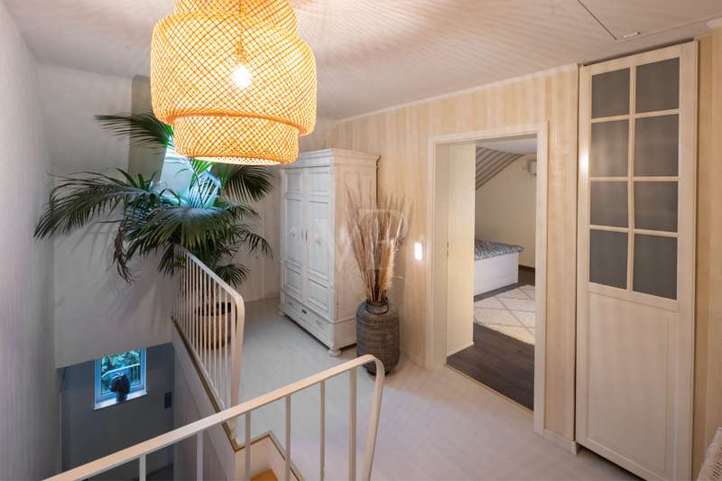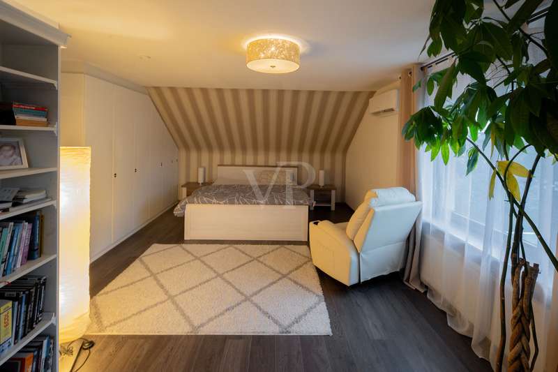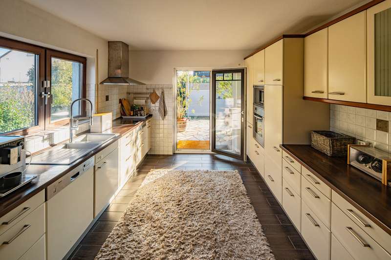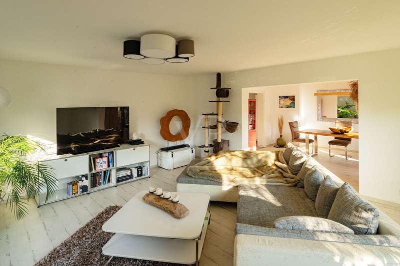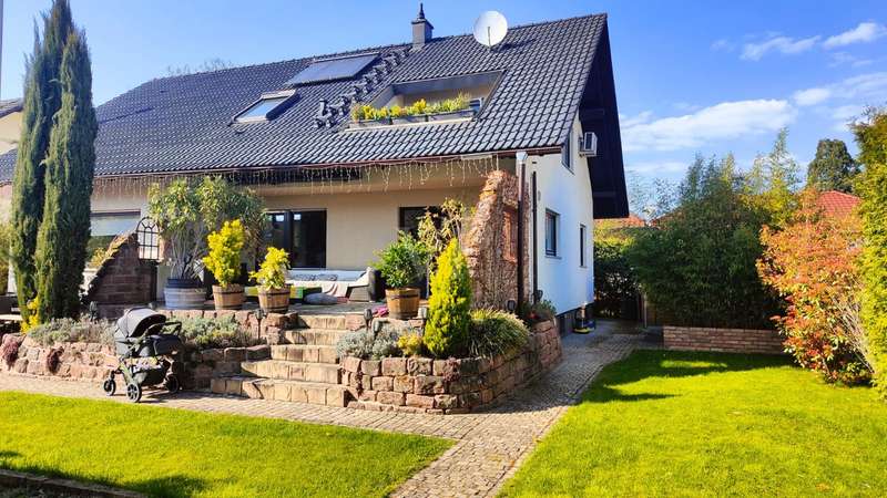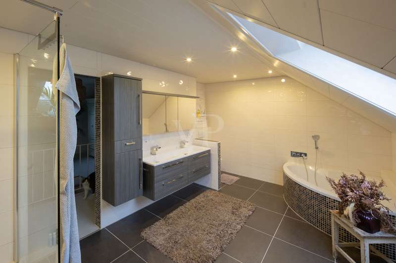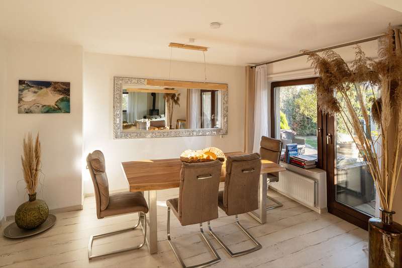 Detached house with attractive outdoor area and modern furnishings This attractive and well-kept property, a detached house built in 1979, offers enough space for comfortable living with approx. 202 m² of living space and a plot of approx. 669 m². The modern furnishings and spacious layout make this house particularly attractive for families. Already extensively modernized between 2014 and 2016, parts of the electricity and water pipes as well as the bathrooms and outdoor facilities were renewed, among other things. A further upgrade followed in 2021 with the installation of a new heating system and solar technology. The central gas heating system with solar thermal support ensures efficient heat distribution and lower energy costs. A total of 8 rooms are spread over two floors, including 5 comfortable bedrooms, some of which are air-conditioned. The first floor has a high-quality shower room, while the upper floor has a spacious bathroom with underfloor heating and a towel dryer. An open solid wood staircase elegantly connects the floors. On the first floor, there is also a spacious fitted kitchen with high-quality brand-name appliances, which provides direct access to the terrace. This invites you to enjoy time outdoors, while the adjoining, spacious garden with several terraces offers further opportunities for relaxation. A wood-burning stove creates a cozy atmosphere in the living room during the colder months. The basement of this house is attractively finished and offers both storage space and extensive, approx. 64 m² of space for hobbies, fitness and a home office. High-quality fitted rooms with large stoneware tiles support both living and working ambitions. The furnishings of the house are of a high quality. This is rounded off by built-in wardrobes and modern thermal insulation. Overall, this property offers a well thought-out and generous room layout that provides plenty of space for the needs of a family. The condition of the house can be rated as well-maintained, which makes it possible to move in without the need for immediate renovation work. The careful and professional modernization of recent years ensures that the property is technically up to date. This property therefore not only offers plenty of space and comfort, but also modern technology and quality. Potential buyers are cordially invited to view the numerous advantages of this house for themselves.