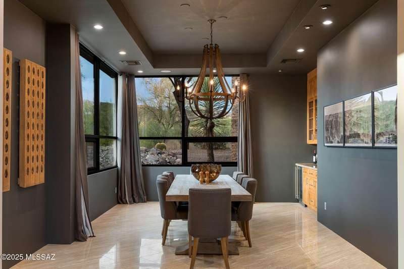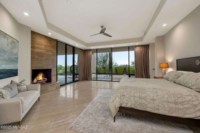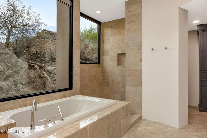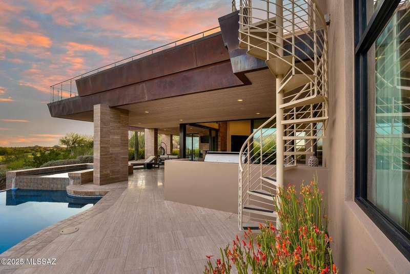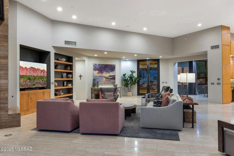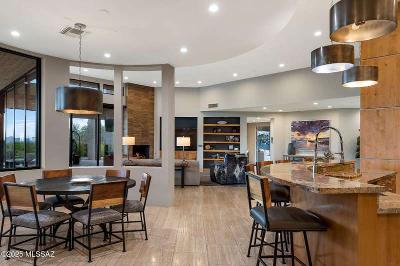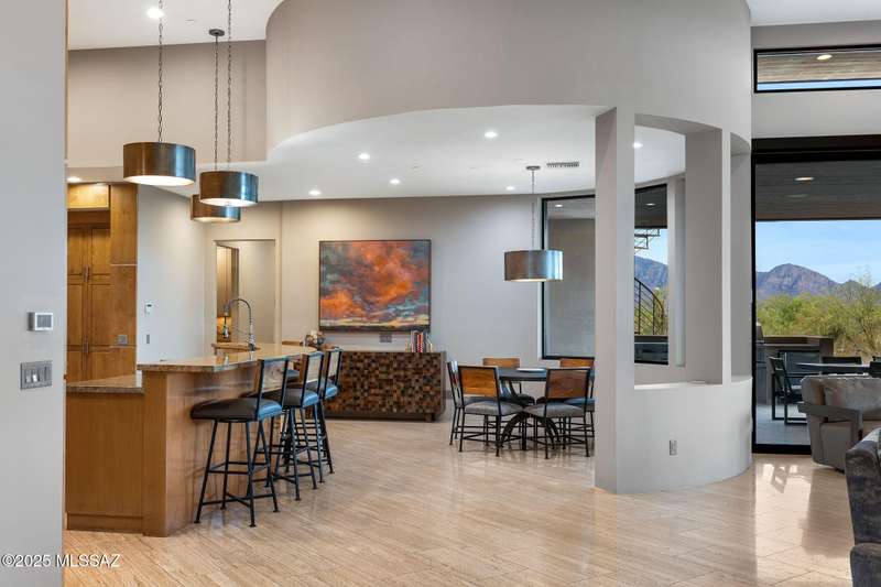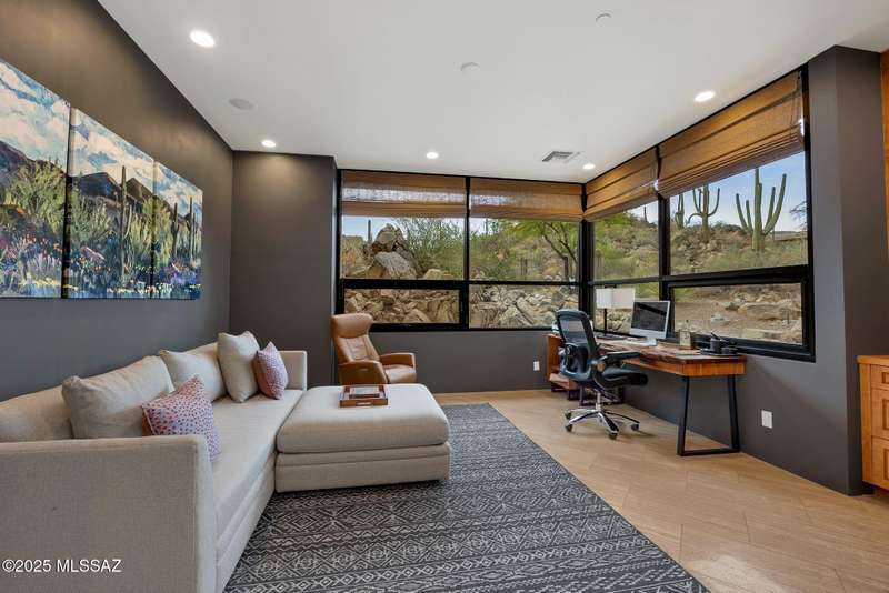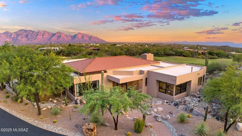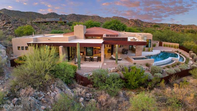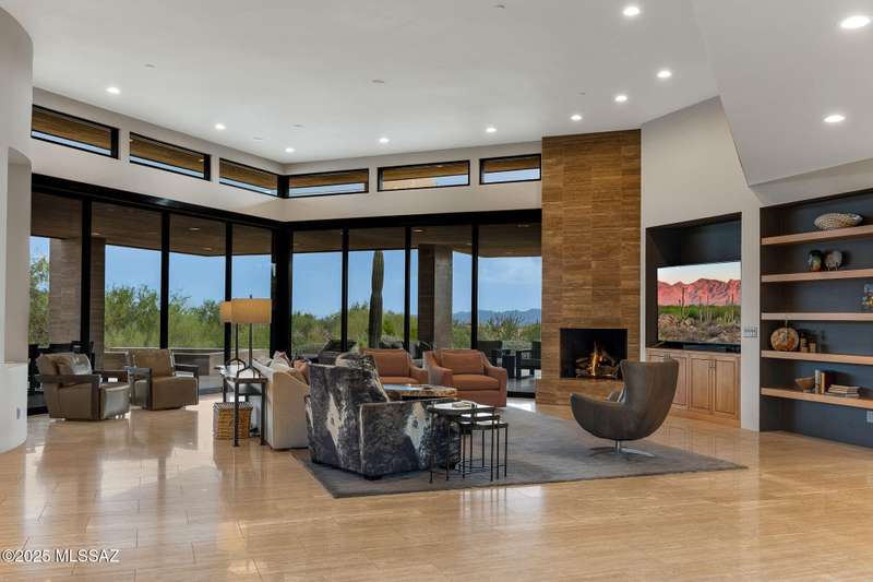 A Modern Desert Space Of Your Own In Stone Canyon \ Set alongside the 13th Fairway and seamlessly carved into the ancient rock outcroppings of Stone Canyon, this contemporary residence is a celebration of design, landscape, and luxury. Surrounded by saguaros and sculptural boulders, the home offers a rare blend of serenity, privacy, and panoramic views - daylight brings sweeping vistas of the Catalina Mountains, while nightfall reveals the city lights of Tucson. Inside you'll find an expansive great room designed for effortless entertaining and daily living.