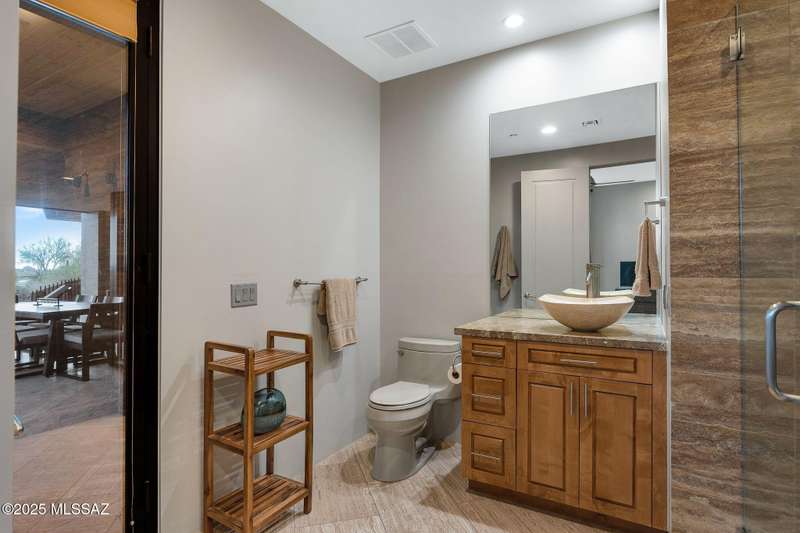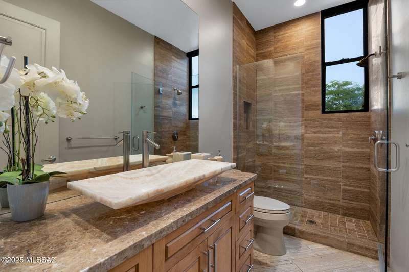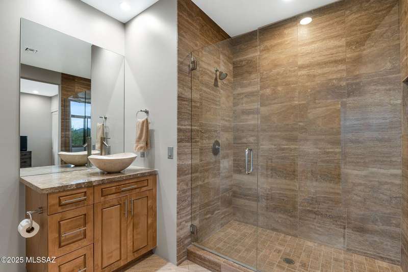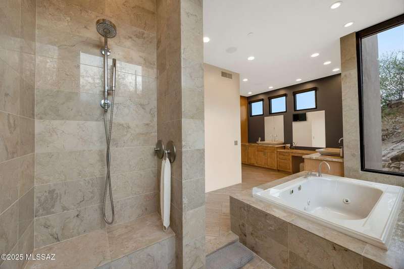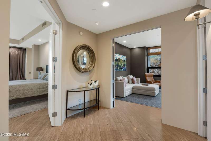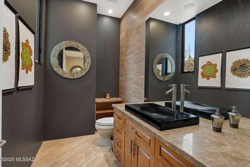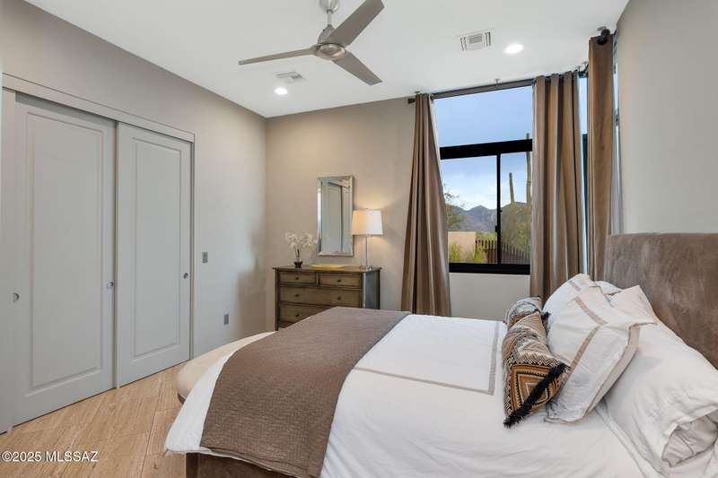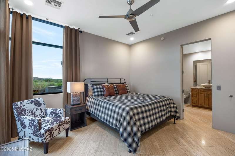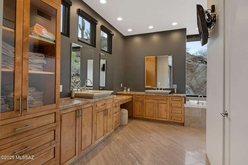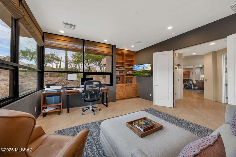 A Modern Desert Space Of Your Own In Stone Canyon \ Set alongside the 13th Fairway and seamlessly carved into the ancient rock outcroppings of Stone Canyon, this contemporary residence is a celebration of design, landscape, and luxury. Surrounded by saguaros and sculptural boulders, the home offers a rare blend of serenity, privacy, and panoramic views - daylight brings sweeping vistas of the Catalina Mountains, while nightfall reveals the city lights of Tucson. Inside you'll find an expansive great room designed for effortless entertaining and daily living.