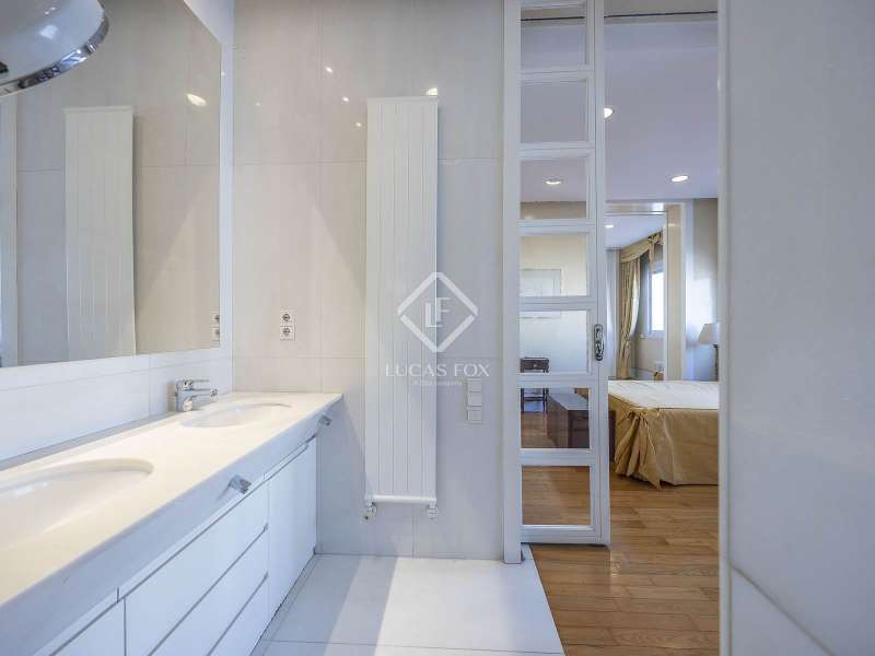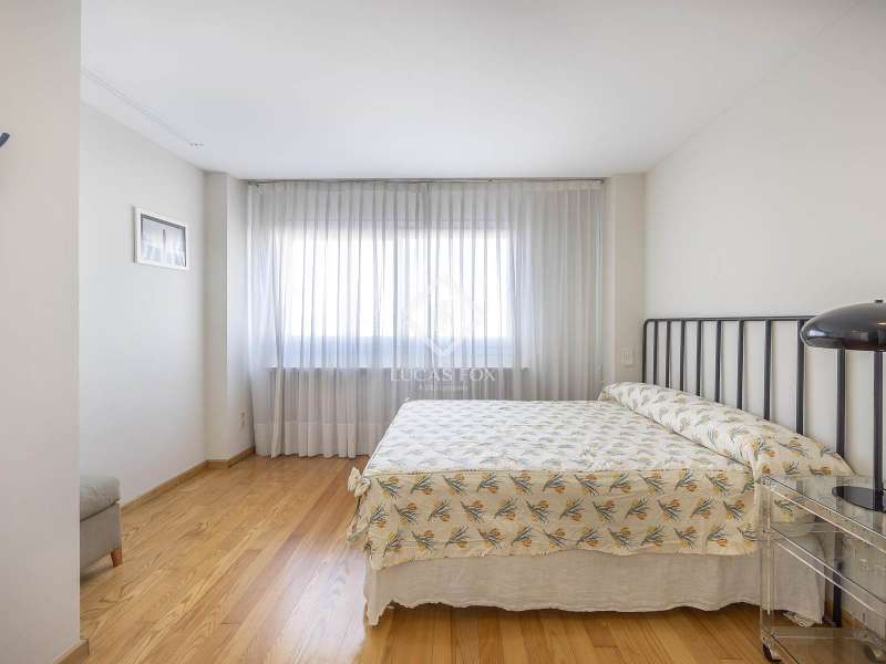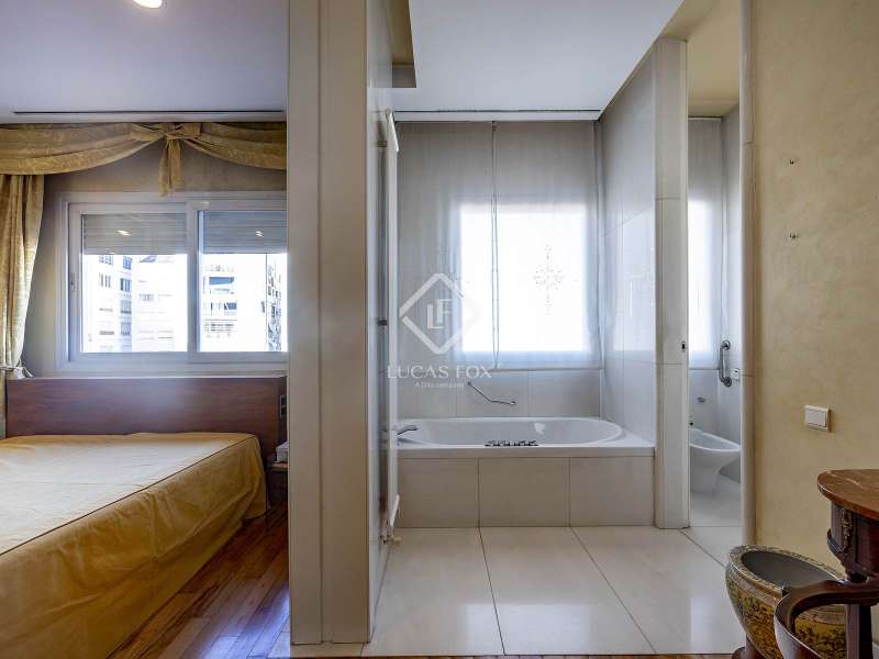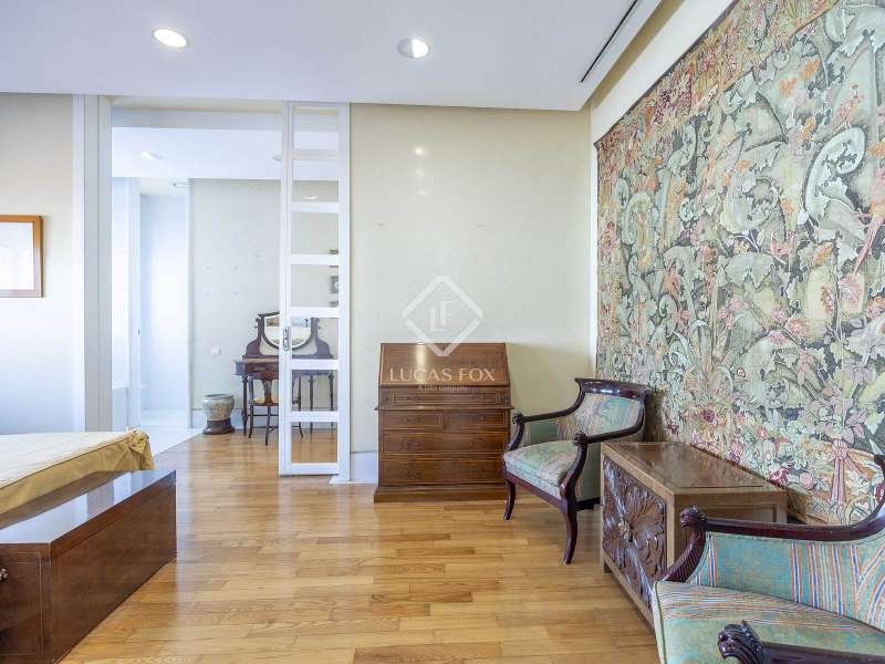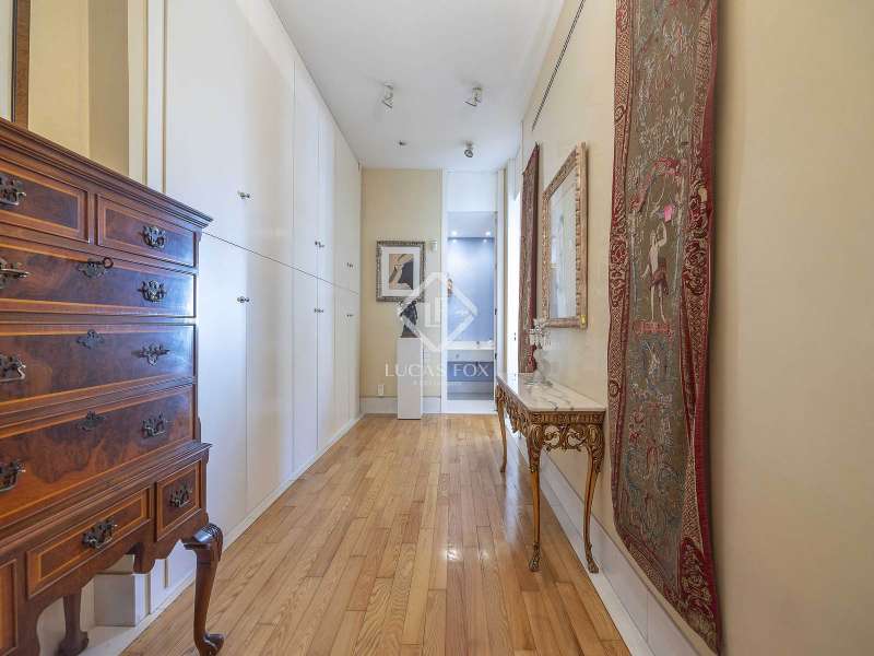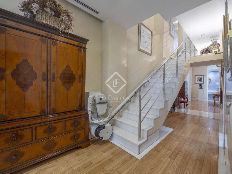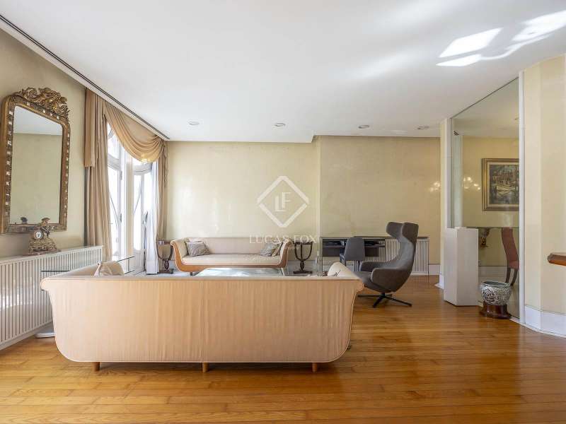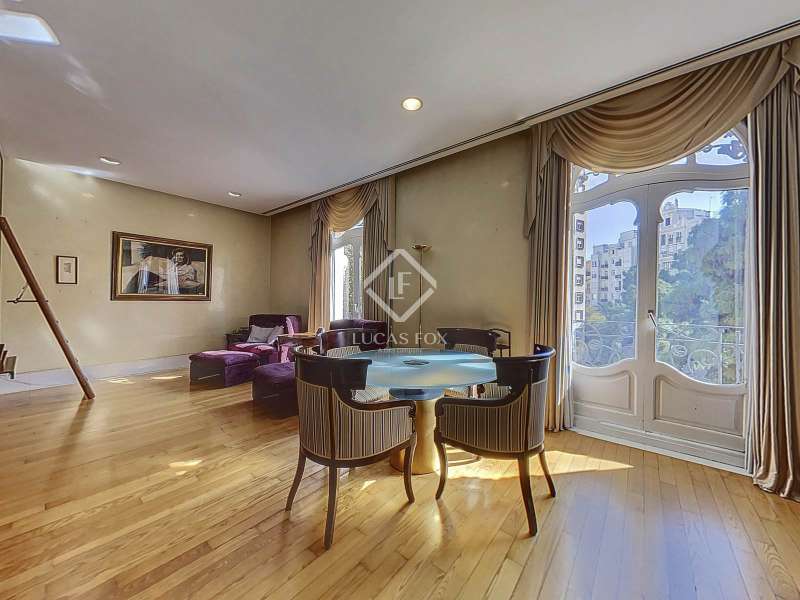 Stunning 457 m² duplex penthouse located in the iconic modernist building Casa Ortega, an architectural masterpiece built in 1906 by the prestigious architect Manuel Peris Ferrando and the sculptor Joaquín Real, authors of some of the most distinguished buildings of Valencian modernism. This building, listed as an architectural heritage site, retains its restored original façade, with handcrafted wrought-iron balconies, floral motifs, sculptural reliefs, and arched windows, reflecting the ornamental richness of modernism. Its elegant entrance hall, with marble floors and a magnificent grand staircase, hints at the exclusive character of the property. The duplex, completely renovated a few years ago with a high-end interior design project, combines the charm of classic architecture with the sophistication and technology of a modern property . Upon entering, a spacious entrance hall with built-in wardrobes leads to a large dining room living room , bathed in natural light thanks to the floor-to-ceiling windows and its southerly aspect. The living room is divided into several areas: an elegant sitting area with a designer fireplace , a main dining room under an interior glass pergola that creates a spectacular play of light, and a more intimate corner designed for reading or music. The kitchen, separate and fully equipped with appliances , offers a central island with breakfast bar, natural quartz countertops, custom-made furniture and a functional design with pantry, laundry area, service area with its own bathroom and secondary access . The master suite, for greater convenience in daily life, is located on the main floor , with more than 40 m², it has an independent dressing room of Italian design, an en suite bathroom clad in Calacatta marble, with rain shower, freestanding bathtub, double sink and suspended toilets. A contemporary interior staircase leads to the upper floor , where there is a large multipurpose living room , ideal as a leisure room, study or home cinema. From here you can access an impressive private terrace of more than 30 m², with enough space to have several environments, and incredible views of open areas and green areas . This floor also houses four spacious double bedrooms, with ample wardrobe space and en-suite bathroom . The property includes two convenient parking spaces in the price, with access from the elevator.