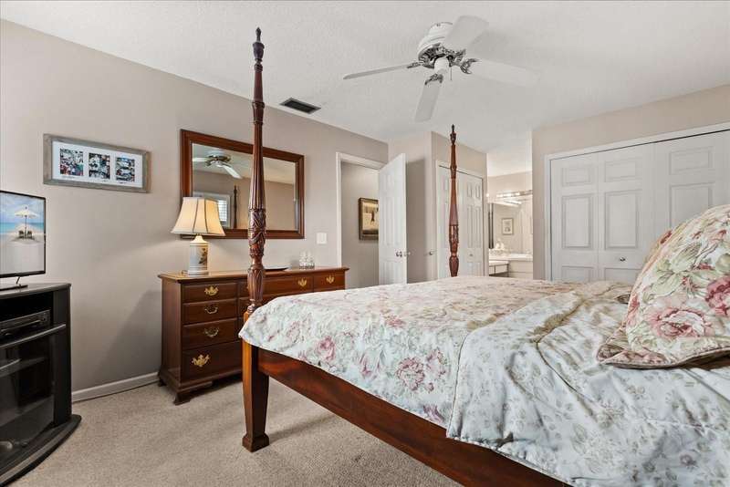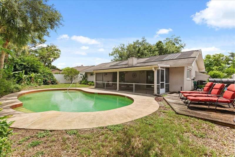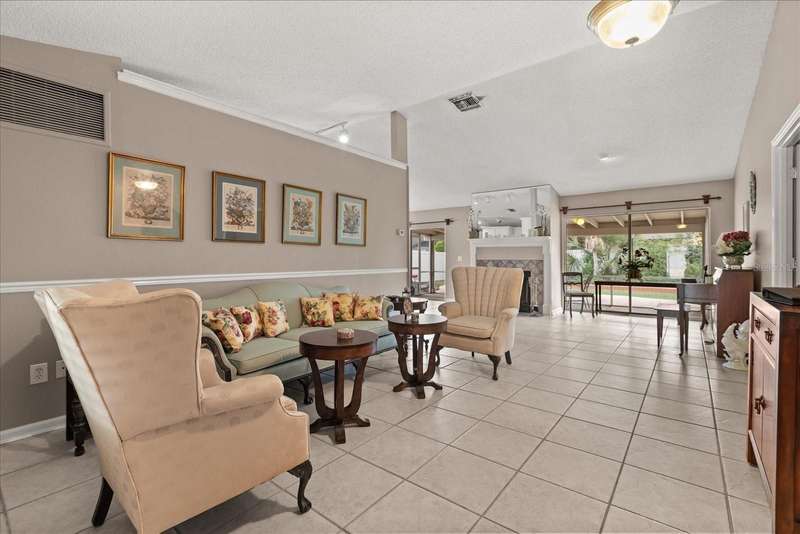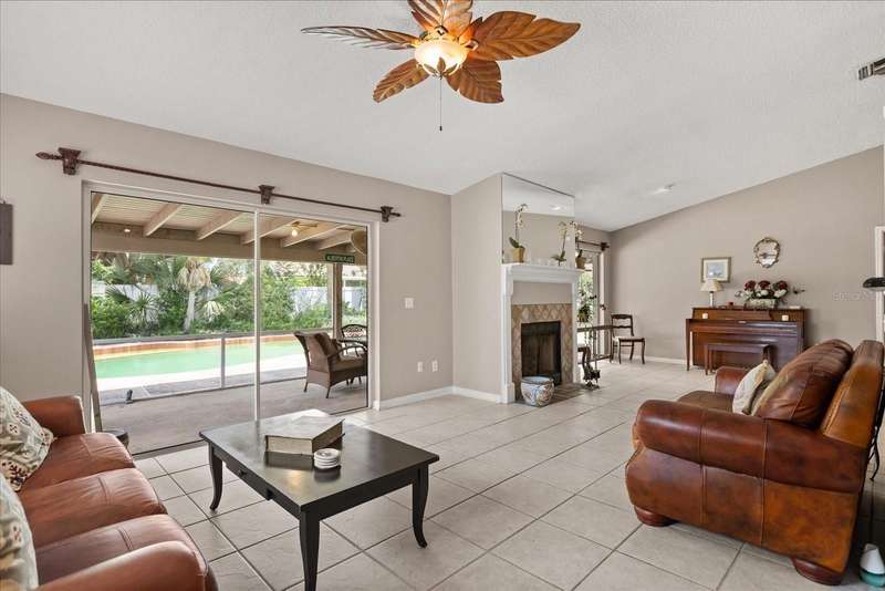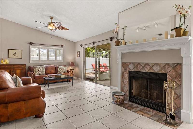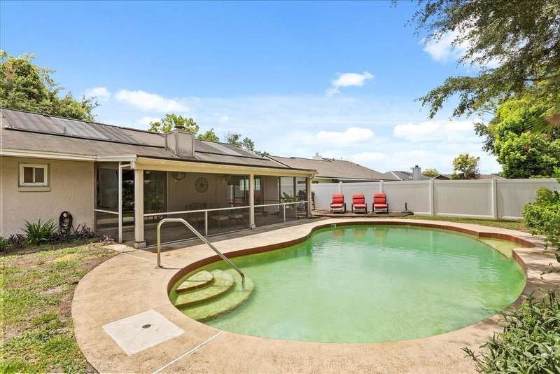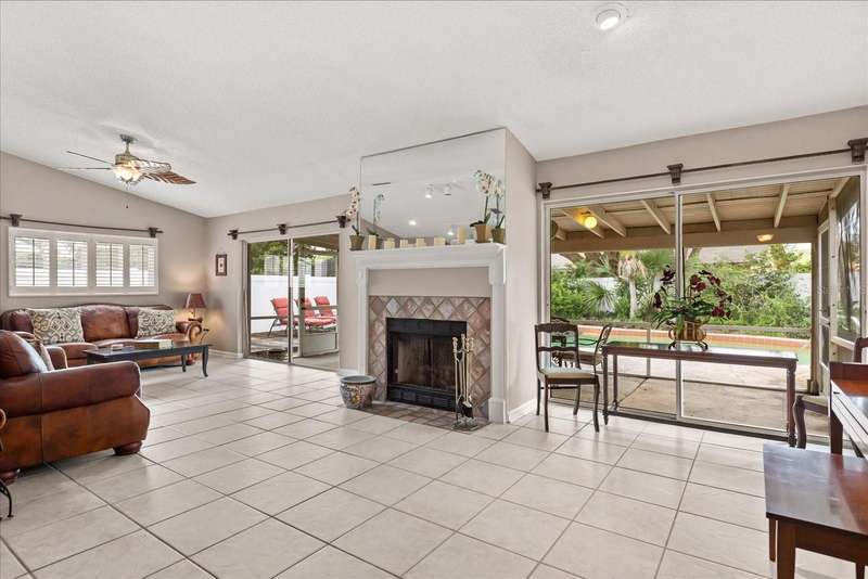 Under contract-accepting backup offers. PRICED TO SELL!!! Located in the heart of Lake Mary’s top-rated school zone and just minutes from premier shopping, dining, and local entertainment! This beautifully maintained home offers a flexible floor plan ideal for multi-generational living, featuring two spacious primary suites—perfect for extended family or a private guest retreat. The family room boasts soaring ceilings and a cozy wood-burning fireplace, creating a warm and inviting space. Enjoy meals in the large eat-in kitchen with lovely views of the screened-in porch and solar-heated pool. Step outside to your fully fenced backyard oasis, offering lush tropical landscaping and plenty of privacy for relaxing or entertaining.