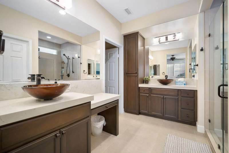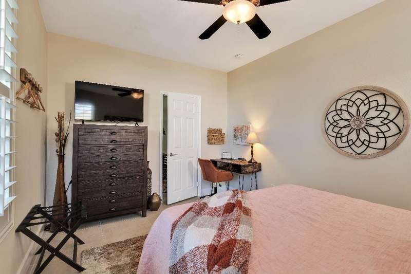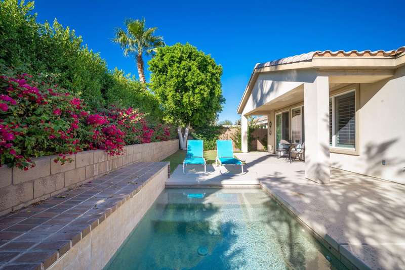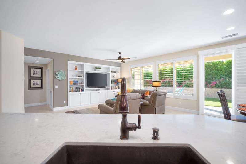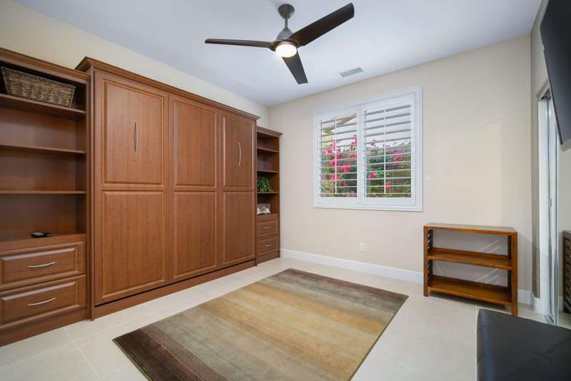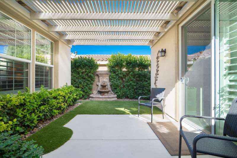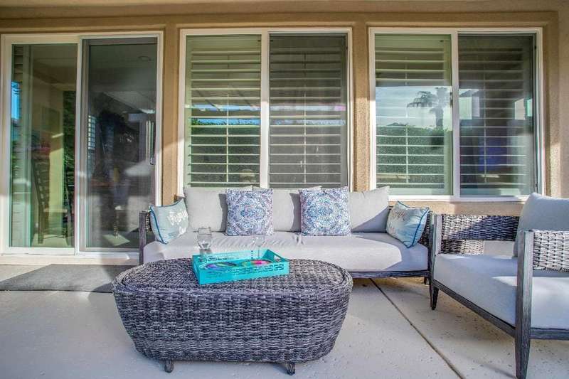 RENTED NOV. 1, 2024 THRU APRIL 30 2025. 11-1-25 thru 3-31-26. Trilogy in La Quinta is a 55 and older community. Enjoy the spacious and well-appointed Casa-del Sol while calling this Trilogy Monterey model home. Wake up refreshed in the comfort of the primary suite's adjustable King bed. With direct access to the backyard, you can enjoy your morning coffee lounging under the ample shade on the resort-style furnishings or relax on a chaise under the sun spool-side.Boasting ample space for your occasional guests, Casa del Sol is appointed with a second bedroom with a queen bed and desk, ideal for working from home, a third bedroom with a king-size Murphy bed plus a separate casita with a king bed, convenient kitchen nette boasting a mini-fridge, microwave, Keurig, sink and dishes. All bedrooms have TV's for enjoying your favorite streaming apps. Additionally, the TV's in the primary suite and great room (65' 4K curved) are equipped with cable. You'll feel at home in the well-appointed kitchen with newer GE Profile appliances, Kitchenaid mixer, instant Pot and more to make meals come together quickly. Grill up some favorites on the patio on the electric BBQ. Enjoy a trip around the gorgeous Trilogy development in the four-seater golf cart. Take advantage of all Trilogy has to offer at the clubhouse including two pools. gym, tennis, pickleball, bocce, Cafe solaz and more