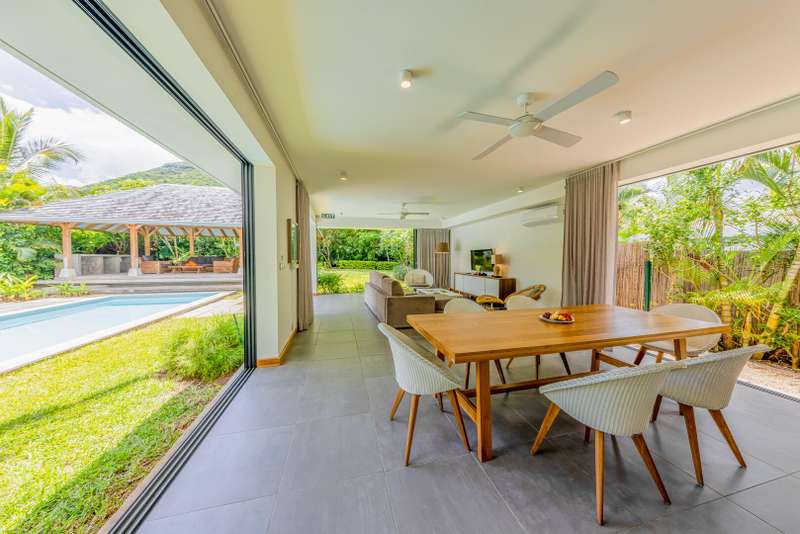 Located within the exclusive Marguery Villas resort in Rivière Noire, Villa 28 embodies tropical luxury and refined design. Ideally situated just 800 metres from the lagoon and facing the iconic La Tourelle mountain, this prestigious residence lies at the heart of a 250-hectare private estate—La Plantation Marguery—offering an unparalleled living environment between sea and mountains. This 4-bedroom Prestige Villa offers an exceptional lifestyle over two levels, with generous, light-filled living areas opening onto a lush landscaped tropical garden. The interiors are designed with premium materials and high-end finishes, while wide openings seamlessly integrate indoor and outdoor spaces, allowing natural light and greenery to flood the home. On the ground floor, two of the villa's four bedrooms—including the master suite—open directly onto the garden and private pool. The master suite includes a spacious bathroom, walk-in dressing area, and a private outdoor shower, blending comfort with authentic tropical charm. Upstairs, two additional bedrooms each feature their own en-suite bathrooms, ensuring privacy and comfort for all residents and guests. The exterior spaces are a true extension of the villa’s elegance, with a large veranda, private pool, and beautifully maintained tropical garden—perfect for entertaining or enjoying the island lifestyle in tranquility. Residents benefit from full access to the Marguery Villas clubhouse, which includes a concierge desk, gym, kids’ club, lap pool, lounge bar, and food corner. A private in-villa catering service is also available, with gourmet menus inspired by seasonal local produce. Villa 28 is offered fully furnished and decorated, with a selling price of €1,250,000, excluding notary and registration fees. The property can be included in the Marguery Villas Rental Pool, offering a flexible model that ensures consistent rental income (estimated returns between 3.5% and 5%), daily maintenance, and the ability to enjoy the property personally as desired. Perfectly located just 50 metres from Ruisseau Créole, an open-air shopping centre with boutiques, restaurants, cafés, a pharmacy, and a weekly organic market, Villa 28 is a rare opportunity to own a luxurious retreat that balances personal enjoyment with strong investment potential on the west coast of Mauritius.