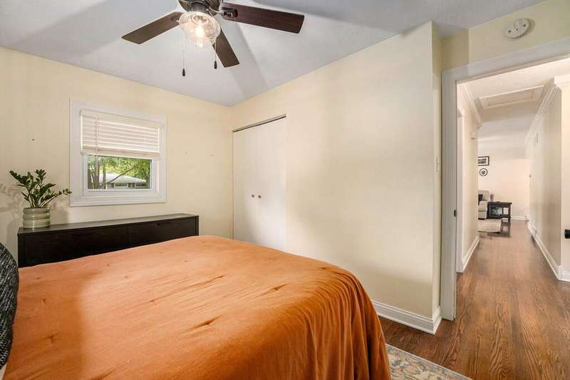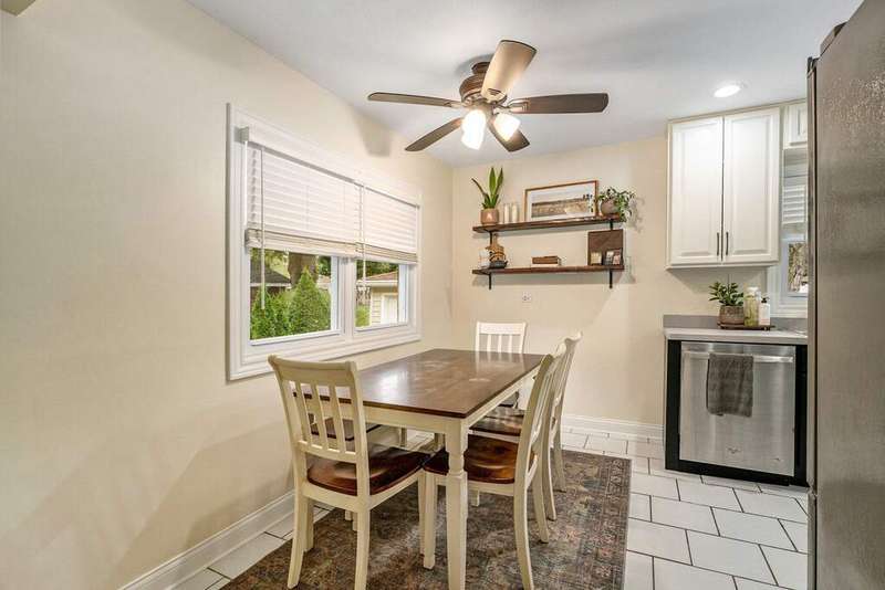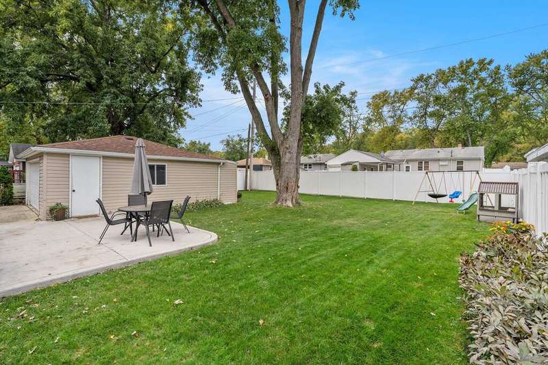 Discover comfort and convenience in this updated all-brick ranch. The main level showcases refinished hardwoods and a bright living room. An eat-in kitchen offers abundant storage; cabinetry has been refreshed and all appliances stay. The primary bedroom features a stylish accent wall, and two additional bedrooms offer recent updates. The full bath is remodeled with a brick accent wall, subway tile, and a modern vanity. Spread out in the finished basement with a remodeled half bath, oversized rec room with new flooring and paint, a gym area, and a finished laundry room with storage. Outside, enjoy a new back patio, spacious fenced yard, and 2.5-car detached garage (insulated & drywalled). Roof 2018. Close to shopping, dining, parks, entertainment, and just minutes from the IL border. Schedule your private showing today!
