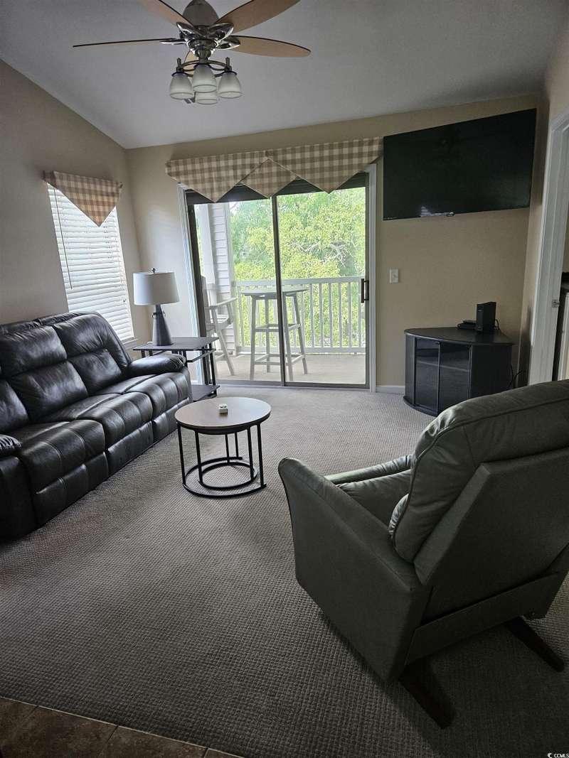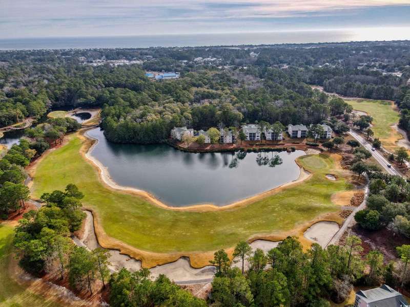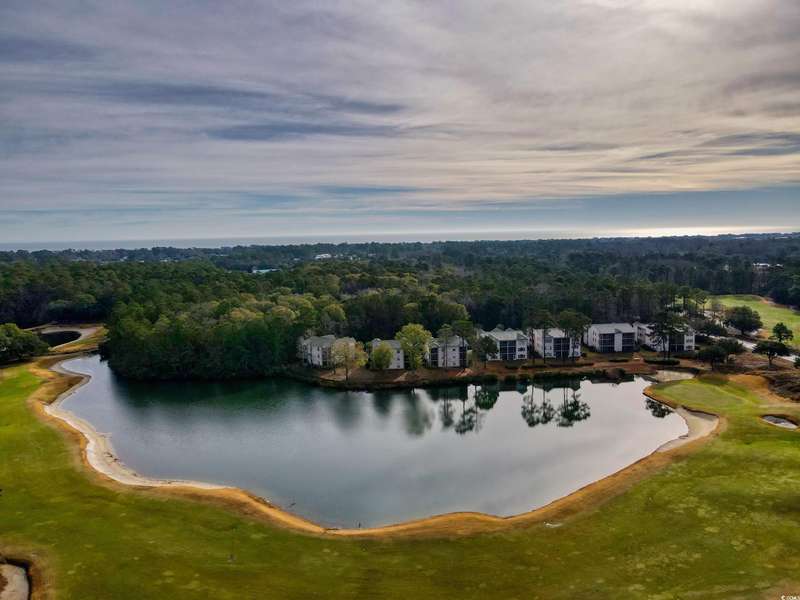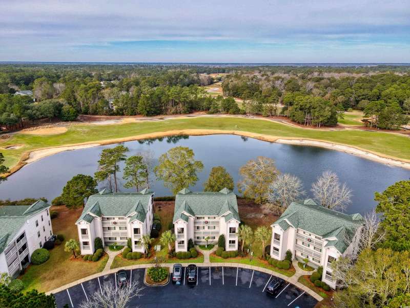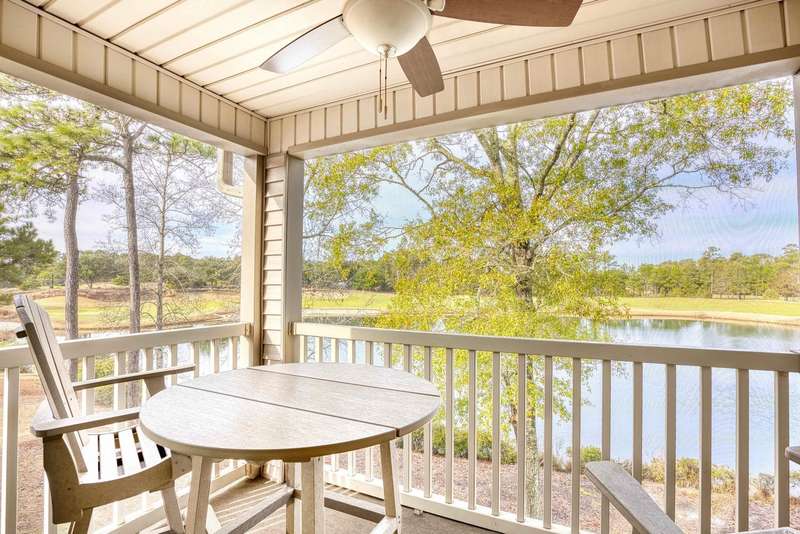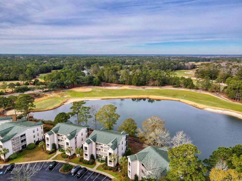 WOW! What a view! This 3rd floor True Blue II end condo offers privacy and a direct view of the beautiful golf course and large lake. Newly painted, this condo has an updated kitchen with newer appliances, quartz countertops, w/waterfall, pantry, touch lights and LED can lights. The kitchen leads into an open dining area and family room with newer carpeting, custom window treatments, vaulted ceiling and sliding doors to the screened porch with the great view. There are 2 bedroom including a master with en suite and slider to the screened porch. There is additional storage in the locked storage shed with a tiled floor located outside the front door. This home is in True Blue II which is a small association within True Blue with its own pool which is located across the street from this condo. Don't miss this opportunity to live on one of the top 100 rated public courses in the country. The condo is being sold fully furnished, just bring your suitcase and start enjoying!