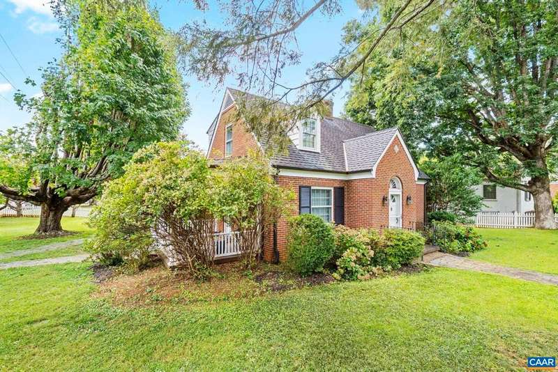 A 30-day closing is now possible. This delightful 3-bedroom, 2.5-bath cottage in the heart of Charlottesville blends storybook charm with urban convenience. The large city lot boasts a level yard with various useable spaces, two covered porches, fire pit, large shed, and a picket fence enclosure. The ideal location is walkable to the University, McIntire Park, Main Street, the Downtown Mall and The Dairy Market, as well as the Rivanna trail system and the YMCA. The well-maintained interior features hardwood floors throughout and updated kitchen and bathrooms. A finished basement offers ample space for storage, a guest area, and a laundry room. Enjoy hosting in the spacious dining and living rooms, or relax outdoors under mature hardwoods and fruit trees that grace the well-landscaped yard. Set on a generous corner lot, the property is newly rezoned as Residential-Commercial and offers incredible potential for future additions such as an ADU or dwelling space. Recent additions adding great value and peace of mind include new HVAC system and water/sewer lines connecting to Public Utilities. This home is a true gem where charm, functionality, and opportunity meet.