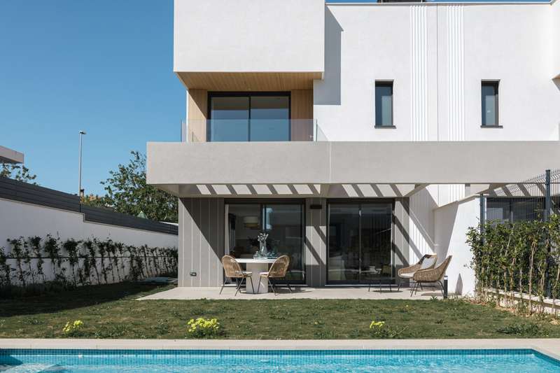This town house is one of the Eneida Views exclusive collection of 16 semi-detached homes, thoughtfully designed to combine functionality, comfort, and aesthetics in every corner. The property features four bedrooms, three bathrooms, a private pool, a garden of over 270 m², and two parking spaces, as well as a lovely rooftop solarium—perfect to enjoy the stunning sunsets over Puig de Ros. The equipment includes an aerothermal system, the efficient and sustainable technology that uses energy from the air to heat water through a heat pump. Large windows allow for excellent natural light, while double glazing ensures optimal thermal and acoustic insulation. Various fully exterior layouts are available to suit the buyer's needs. All of this is backed by ASEFA Insurance, providing peace of mind with the guarantee of a well-established, publicly traded company. Eneida Views offers you a secure investment and the chance to enjoy a modern home tailored to your lifestyle. Contact us