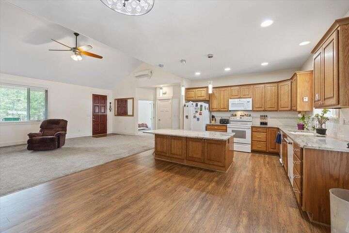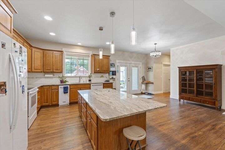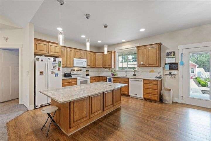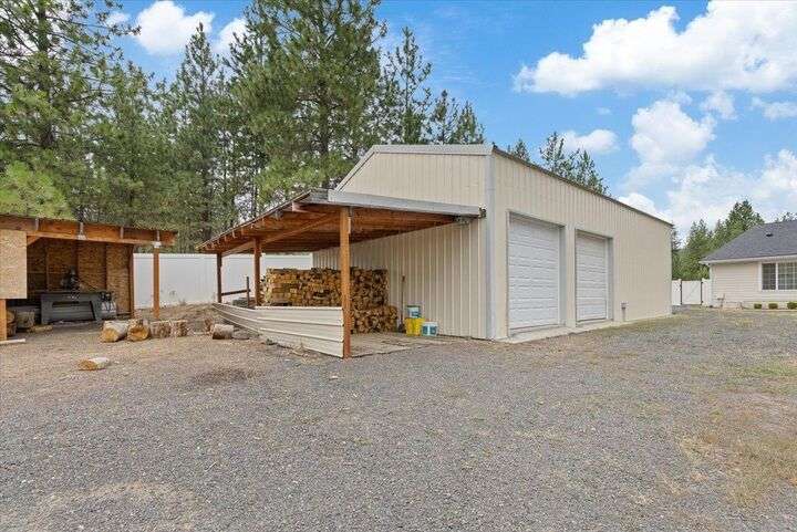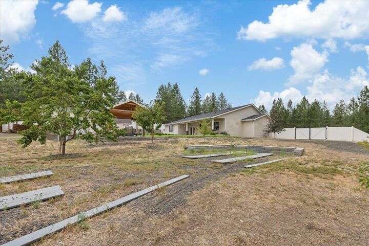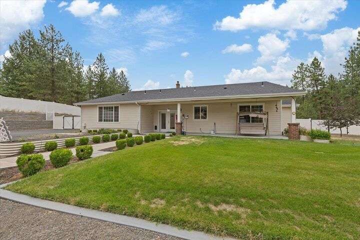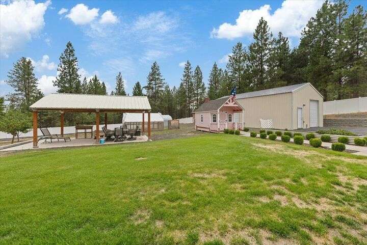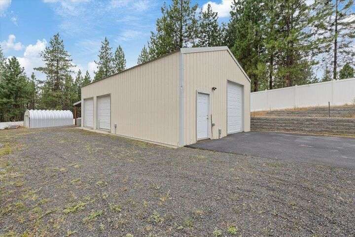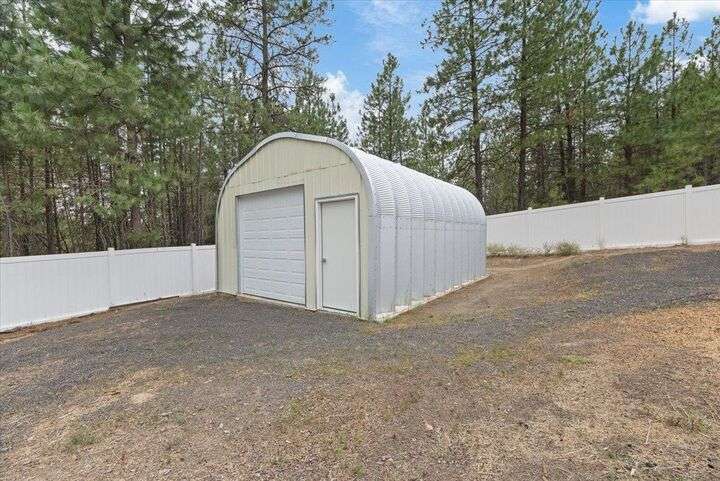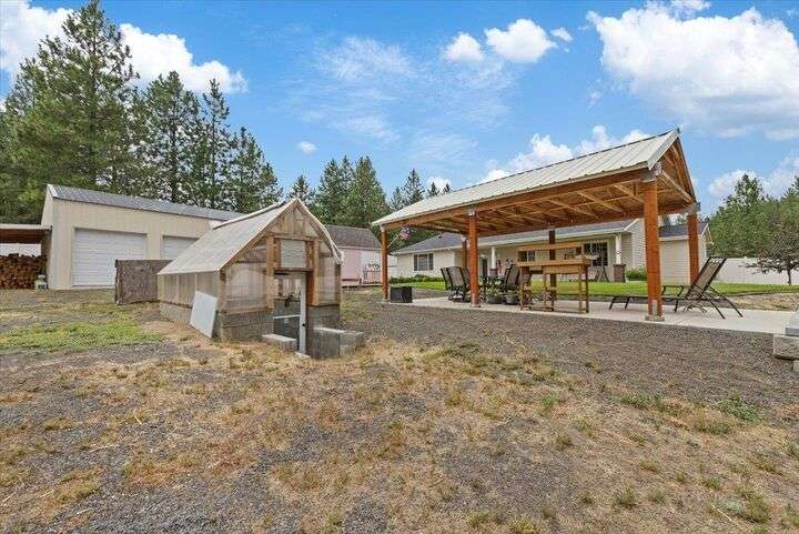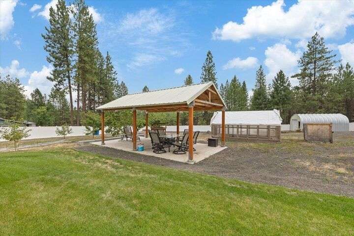 There's a lot to love about this property! No-step entry stick-built rancher with 1843 sq. ft. on a 1.25 acre lot in a secluded area just outside Suncrest/Nine Mile Falls. Home has an attached garage & shop as well as multiple outbuildings! If you have toys/hobbies, this place is perfect for you! 25' x 40' shop with RV door, concrete floor, power. There's also a 23' x 17' quonset hut with concrete floor. Large covered outdoor dining area, a greenhouse and she-shed offer multiple spaces for outside enjoyment. The yard is fenced with vinyl fencing. Paved driveway with lots of parking space. Garden area and fruit trees. Home features a European fireplace that can be used as primary heat for lower utility bills. Kitchen features granite counters and a large island for extra counter prep space. Primary suite has a walk-in closet and large bathroom.