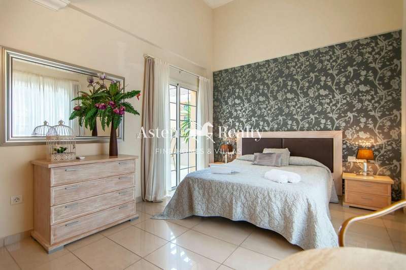 On the first floor of the apartment is the fourth bedroom and a large terrace of 100 m2 with sun beds and outdoor shower. There is also a barbecue area. On the terrace there is a sufficient amount of garden furniture for a quality rest. Along the perimeter of the terrace numerous Canarian plants are planted.