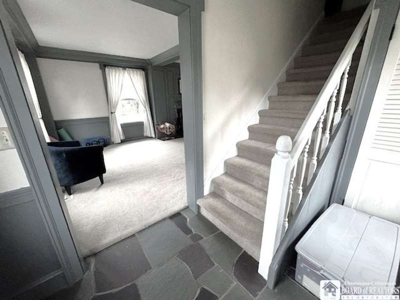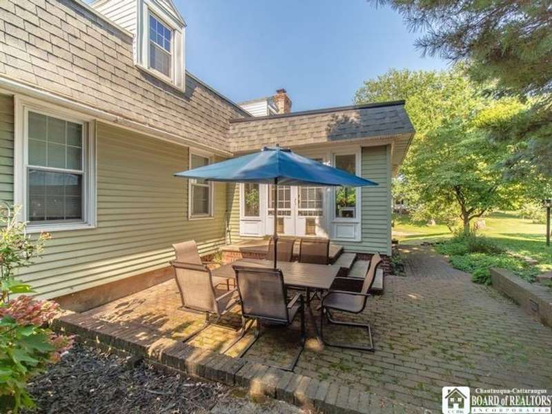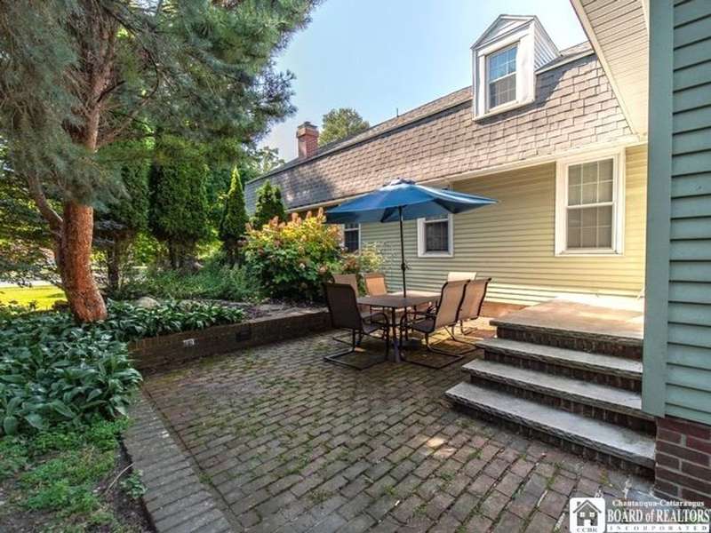 Colonial on the Avenue! Classic design offering abundant amount of space & room for entertaining, an in-home office, and cozy personal living space! Horseshoe driveway alongside leads to small covered porch & handy entry into mudroom, 2nd driveway leads to backyard as well as attached rear garage! Formal front entryway takes you through to expansive formal living room with woodburning fireplace for crackling warmth on cold winter evenings; a lovely spot for Holidays & gatherings. Formal dining room for special dinners & celebrations opens from the living room inviting larger dinner seating . Kitchen & prep area has great space, offering nook with built in desk & phone/laptop charging area; sidebar/wetbar with wine chiller, vegetable sink & wine rack. So much room to this kitchen with Northern & Eastern light exposure...many solid wood cupboards, full wall pantry, great counter space as well as super handy breakfast bar with cooktop! Kitchen offers open concept to breakfast & lunch eating area that is surrounded by windows that bathe the room with light & offer huge backyard views! From there you flow into the cozy family room, open concept as well, that is just the right size for conversation, homework, movie watching & winding down from the busy day. French doors take you out to patio, courtyard & entry to backyard. Many rooms offer a choice of various bedroom & office spaces... 4-5 bedrooms is easy! First floor has 2 rooms ideal for bedroom use or maybe combined together for possible 1st floor master bedroom with possibility of connecting to the half bath on other side of bedroom wall..... or 2 offices on the 1st floor for those that work remotely or need home offices...upstairs has 3 more bedrooms offering large master bedroom with private bath! 2 Dedicated Central A/C air units & 2 furnaces, one for each wing serve this home well & have individual Smart Thermostats. Electrical service is buried, no wires above! New power outlets & switches furnished with USB charger ports. Furnishings can be included & owners are willing to grant an early move-in. Nice location to walk to College; village parks. Wonderful Fredonia find, a true home you can be proud of!