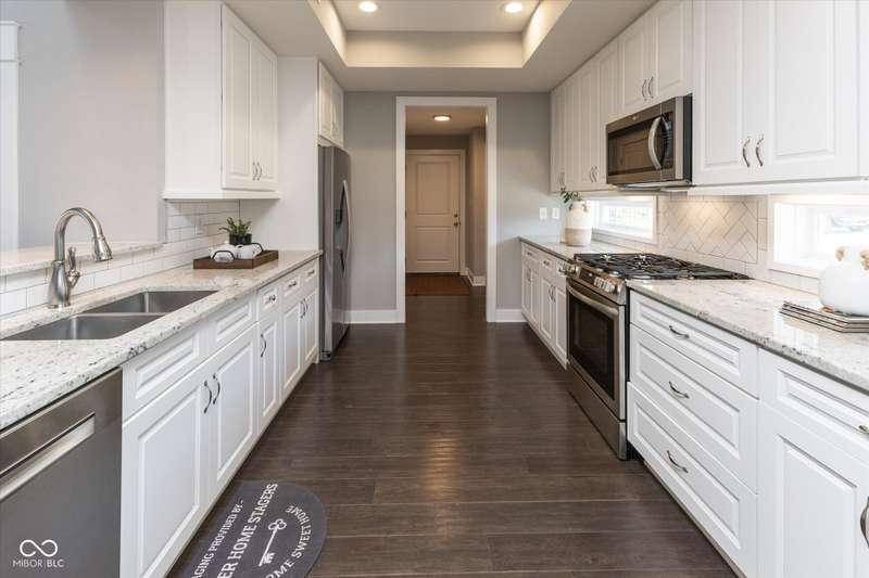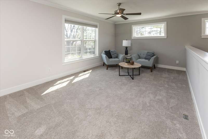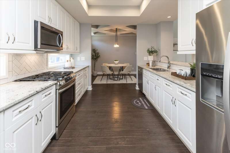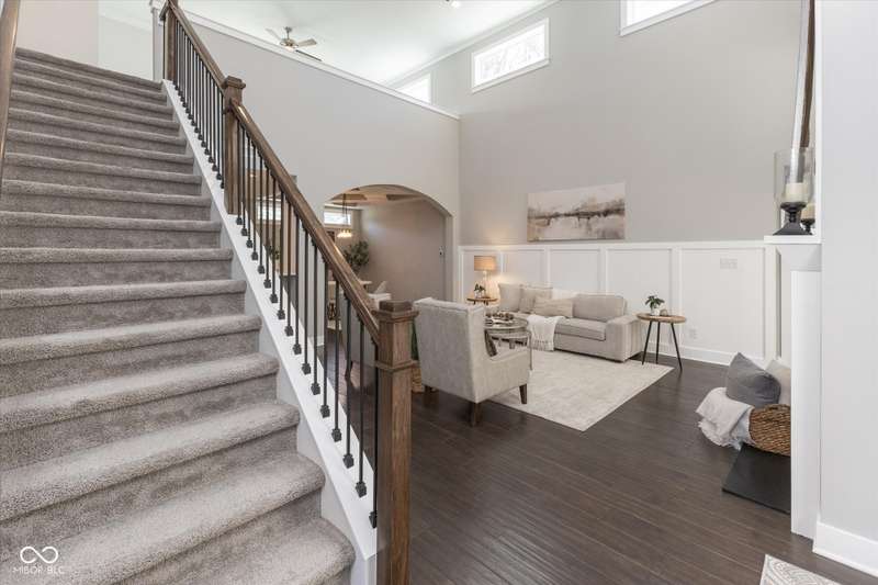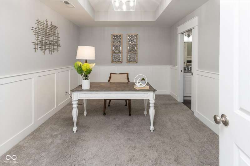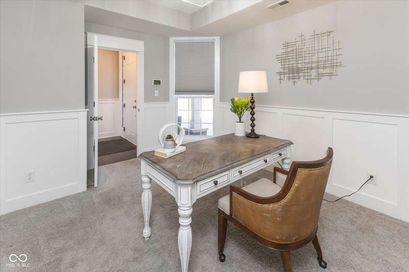 Unbelievable price on this Custom Sigma Builders LLC Surrey Park home in a prime location in Washington Township. Move in and Enjoy the low maintenance lifestyle, lawn care and snow removal included in a low monthly fee of $150, a rare find in Washington Township. This home has high end custom finishes and architectural details found in much higher priced homes. There are gorgeous details throughout the home including granite countertops, custom molding and trim work just to name a few. The high ceilings greet you as you walk into the home. The Great Room is full of light from the abundance of windows and high ceilings plus a stunning granite-surrounded Fireplace. The Open Floorplan has a beautiful modern upscale kitchen with white cabinets, breakfast bar and high-end appliances. The spacious dining room has a stunning custom-crafted ceiling. There are 2 Primary Suites, Your choice.... Main Floor or Upstairs. The main floor Primary Suite has a spa-inspired bathroom spacious walk-in closet. Also on the main floor, there is a wonderful private office that is great for working at home. Upstairs includes the Second Primary Suite plus third bedroom with an en-suite bath walk-in closet. The loft is oversized and full of light, just a perfect place for a family room or flex space so many possibilities. The private backyard with an oversized patio, gas grill, and a fully fenced backyard. Ample parking is assured with a three-car garage, courtyard parking, plus an additional assigned space directly adjacent to the house. Its prime location offers efficient and easy access to I-465, downtown Indy, and the vibrant culinary and artistic scenes of Ironworks, Keystone at the Crossing, Carmel, and Broad Ripple are just a few minutes away! This is more than a house; it's an opportunity to own a nearly new home in a fabulous location! Welcome Home!