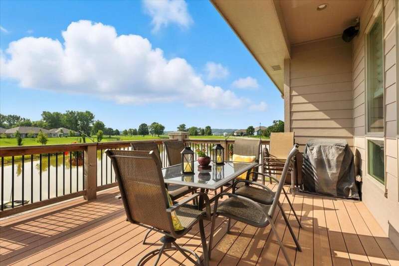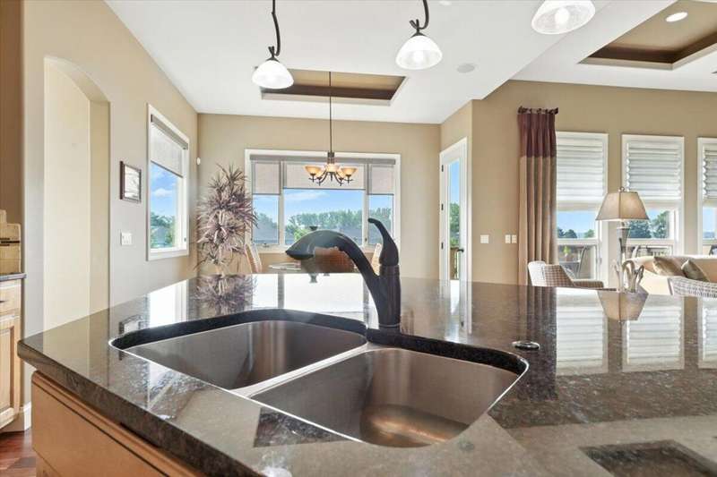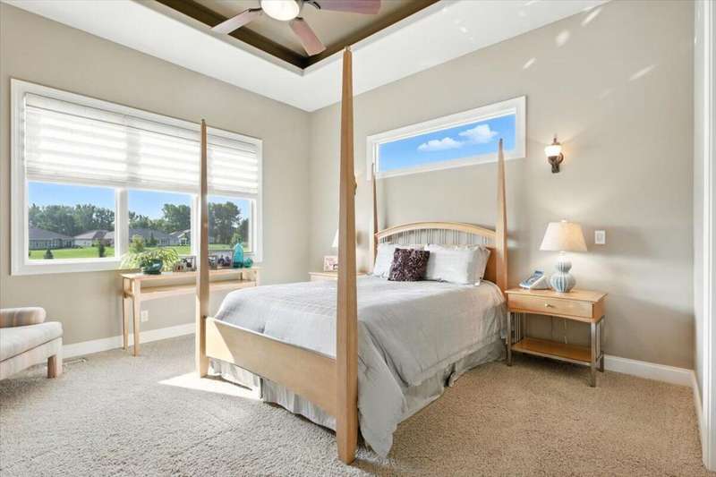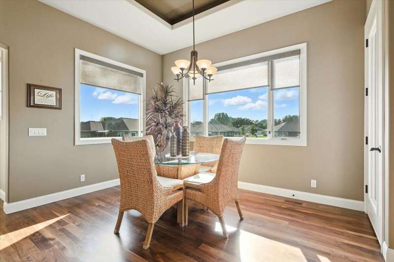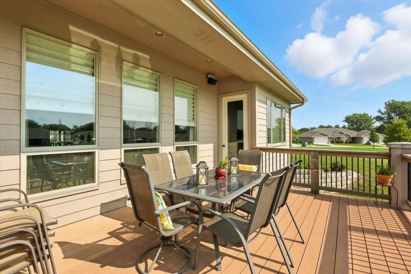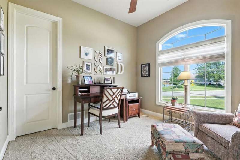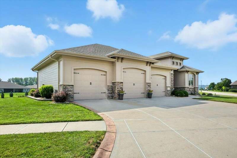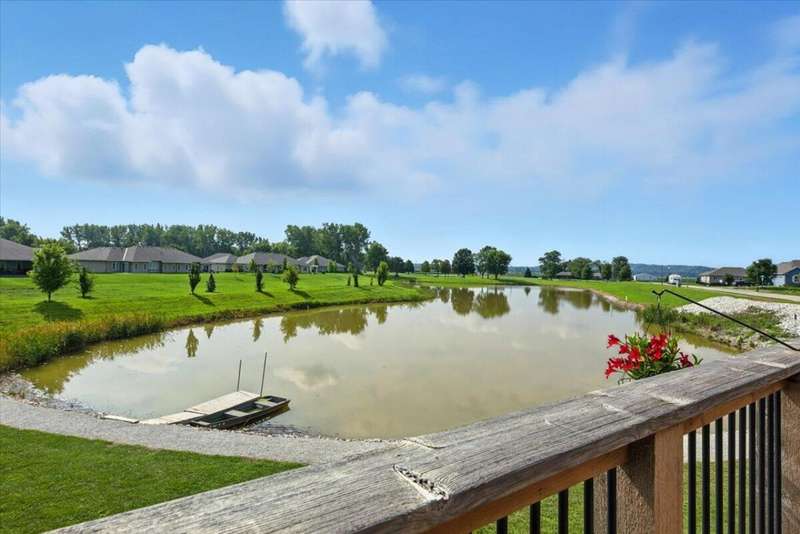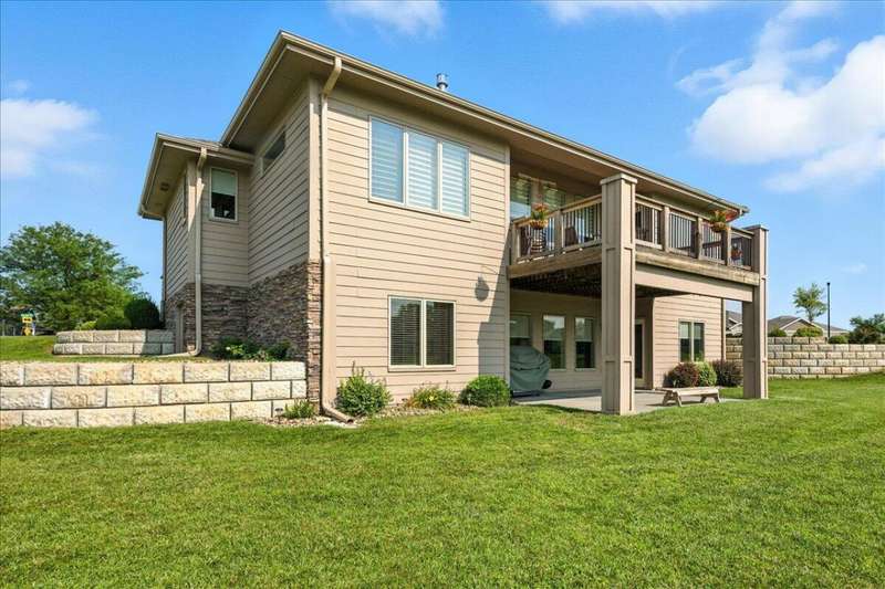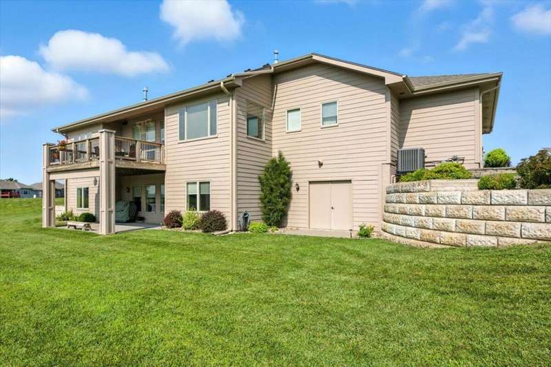 This executive custom home, it sits on a .39 acre corner lot, and lot next door is available at $49,900 if desired. This custom built home features radiant in floor heat in lower level, with a walkout basement. High end kitchen appliances, with a gas range, granite counter tops and vanities throughout the home. Extra tall interior doors on the main, recessed ceilings with indirect lighting, wet bar in basement, maple cabinets, and freshly refinished walnut flooring on the main. Dual sinks and large shower in primary bedroom with whirlpool tub. Gas fireplace on the main with a very open concept and lots of natural light. There are rear service doors for extra storage or golf cart, concrete siding, partially covered composite deck. Complete new HVAC system in July of 2025, new roof in 202