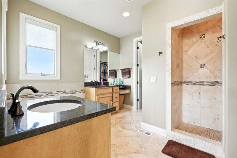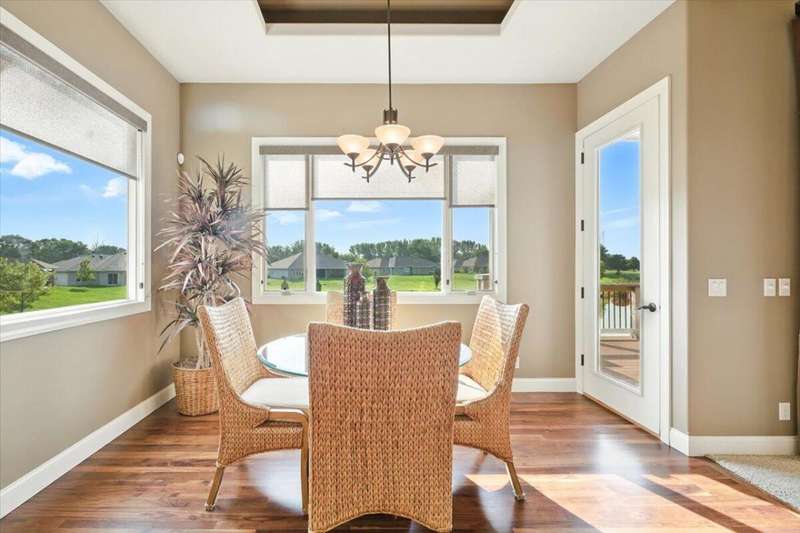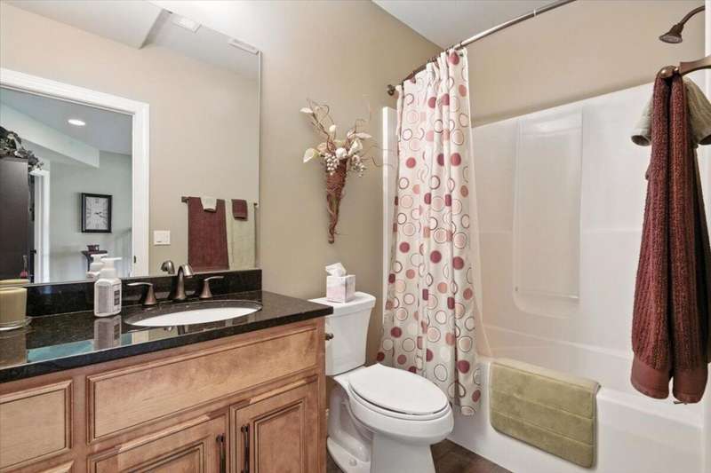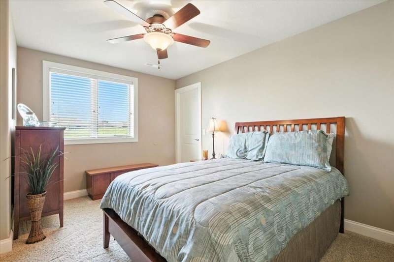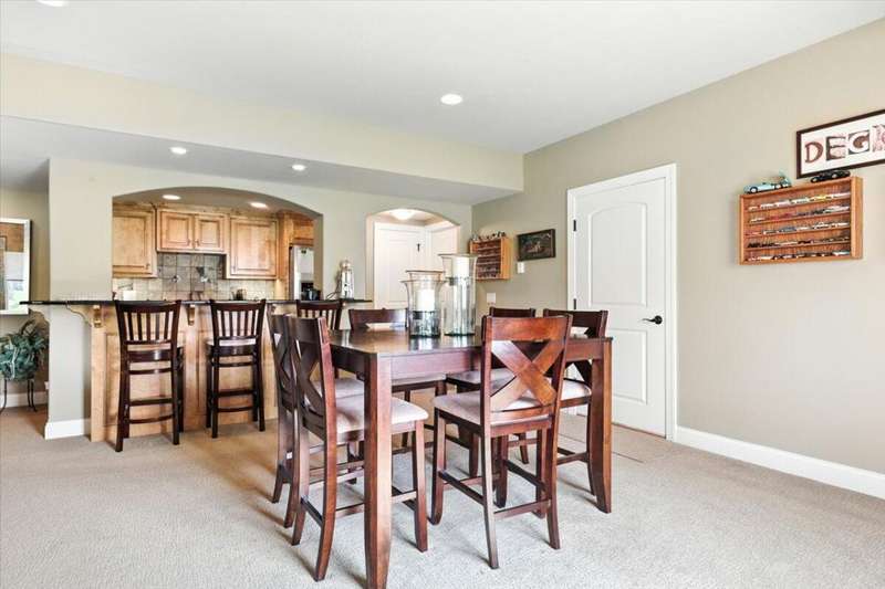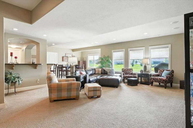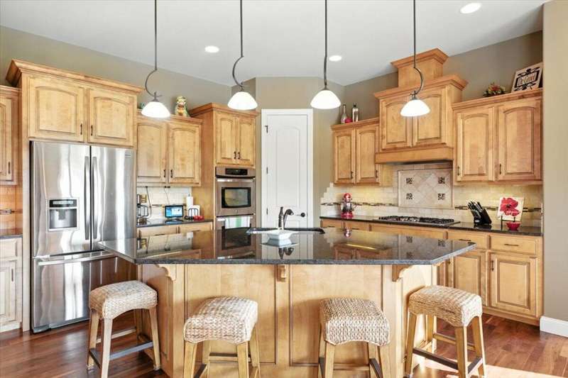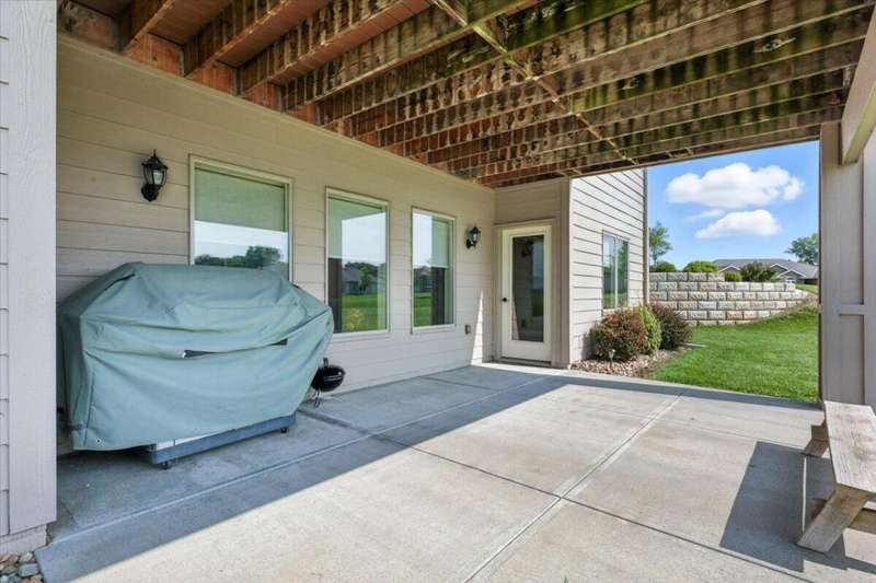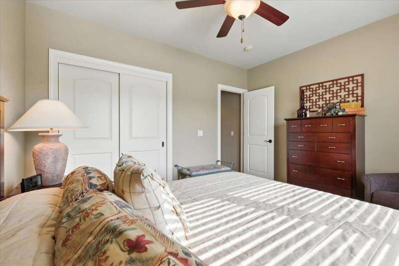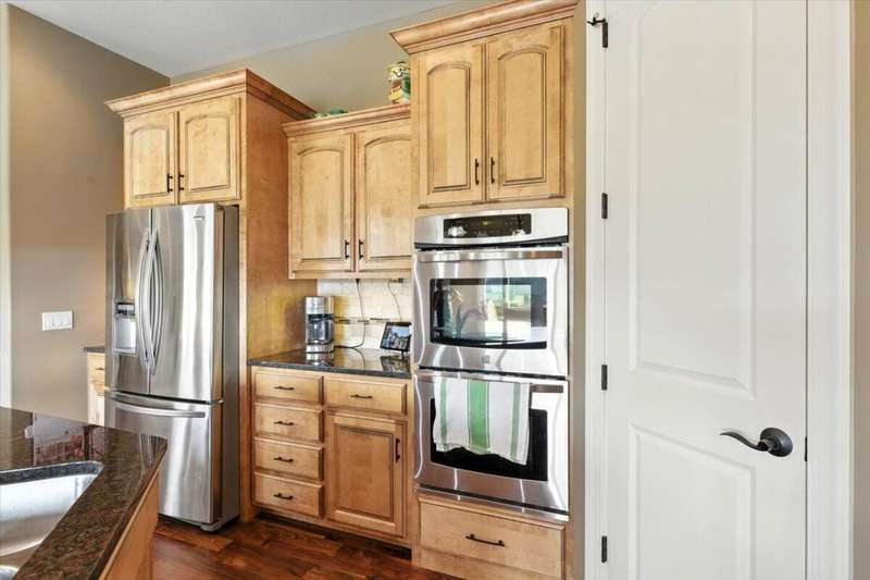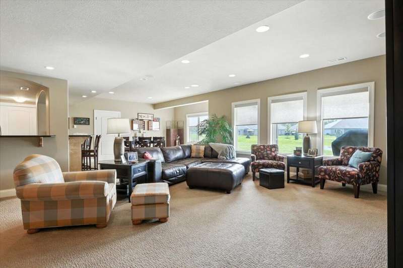 This executive custom home, it sits on a .39 acre corner lot, and lot next door is available at $49,900 if desired. This custom built home features radiant in floor heat in lower level, with a walkout basement. High end kitchen appliances, with a gas range, granite counter tops and vanities throughout the home. Extra tall interior doors on the main, recessed ceilings with indirect lighting, wet bar in basement, maple cabinets, and freshly refinished walnut flooring on the main. Dual sinks and large shower in primary bedroom with whirlpool tub. Gas fireplace on the main with a very open concept and lots of natural light. There are rear service doors for extra storage or golf cart, concrete siding, partially covered composite deck. Complete new HVAC system in July of 2025, new roof in 202
