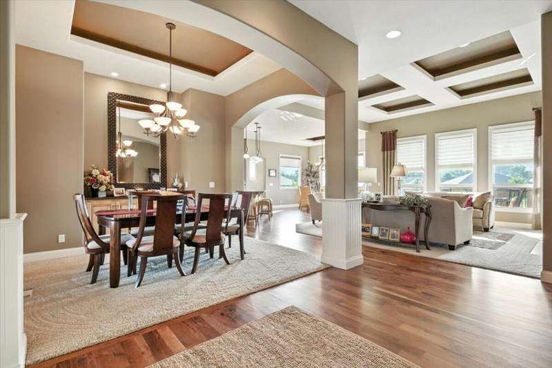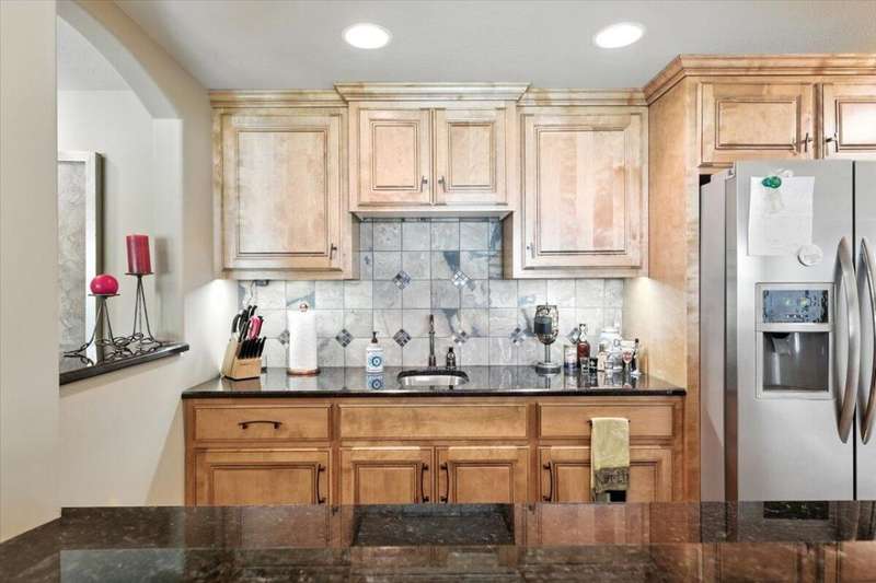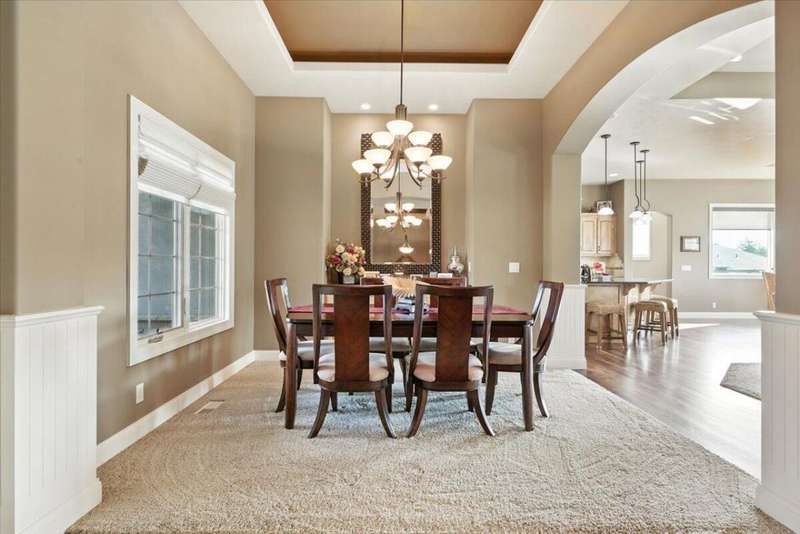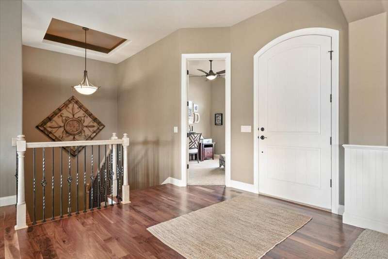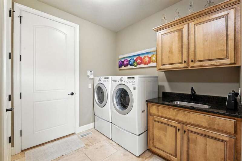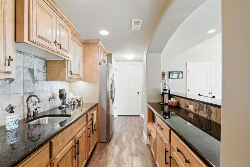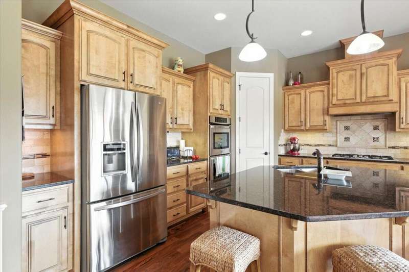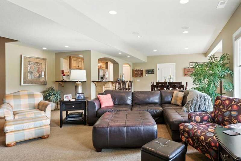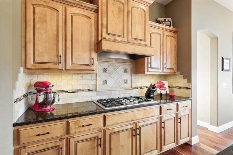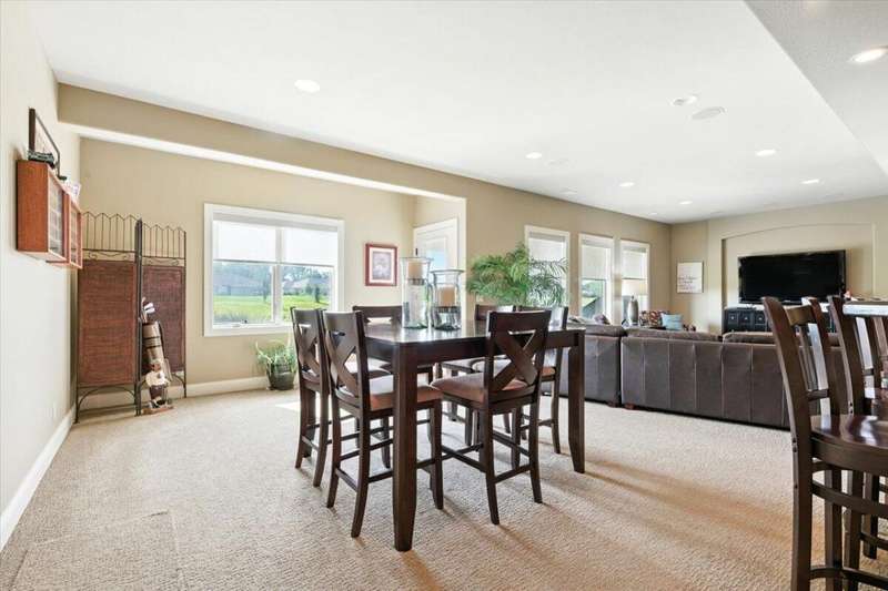This executive custom home, it sits on a .39 acre corner lot, and lot next door is available at $49,900 if desired. This custom built home features radiant in floor heat in lower level, with a walkout basement. High end kitchen appliances, with a gas range, granite counter tops and vanities throughout the home. Extra tall interior doors on the main, recessed ceilings with indirect lighting, wet bar in basement, maple cabinets, and freshly refinished walnut flooring on the main. Dual sinks and large shower in primary bedroom with whirlpool tub. Gas fireplace on the main with a very open concept and lots of natural light. There are rear service doors for extra storage or golf cart, concrete siding, partially covered composite deck. Complete new HVAC system in July of 2025, new roof in 202