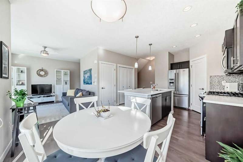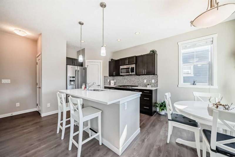 SUNLIGHT AND PATHWAYS DEFINE THIS THREE-STOREY TOWNHOME IN NOLAN HILL. With its WEST-FACING exposure, evenings here come with golden light spilling across the living room and straight onto the MAIN BALCONY — a space large enough for a barbecue and a proper seating area, whether that’s a bistro set for dinners outside or a couple of lounge chairs for end-of-day unwinding. When you want something more private, the SECOND BALCONY off the primary bedroom gives you a quiet perch above the pathways, perfect for morning coffee. Your own peaceful retreat with visitor parking directly out front, and gorgeous ravine pathways to the back of the property. Instead of a backyard that needs mowing, you get uninterrupted ACCESS TO A GREENBELT behind the complex. A central pathway links straight to Nolan Hill Pond and the wider community trail network — an easy launch point for dog walks, stroller loops, or a jog before work. Inside, the layout is designed to keep routines smooth. The ground floor collects the entries, garage, and mechanicals in one place, so the main living level feels open and uncluttered. Laundry sits just off the kitchen, making chores easier to fold into daily life. Both third-floor bedrooms come with their own ENSUITES, which means no waiting for showers and no awkward guest situations. The primary also adds a WALK-IN CLOSET, while the second bedroom doubles up with TWIN CLOSETS for extra storage. Parking is straightforward: a SINGLE ATTACHED GARAGE, a DRIVEWAY for another vehicle, plus a row of additional stalls directly across the roadway when visitors arrive. And because this unit sits inside the complex, on the quieter internal road, traffic is limited to neighbours — so evenings on the balcony feel private and calm. Around you, Nolan Hill offers more than just quiet streets. Within minutes you’ll hit MAJOR SHOPPING HUBS like Beacon Hill or Sage Hill Crossing (Costco, T&T Supermarket, Home Depot, restaurants). Stoney Trail makes commuting simple, and playgrounds and parks dot the neighbourhood for everyday outdoor time. This is the kind of LOW-MAINTENANCE TOWNHOME that gives you the best of both worlds: lock-and-leave freedom with greenspace and pathways right at your door. Book a showing, step onto the balcony, and enjoy the view for yourself!