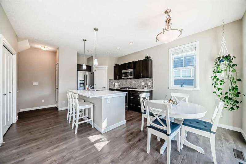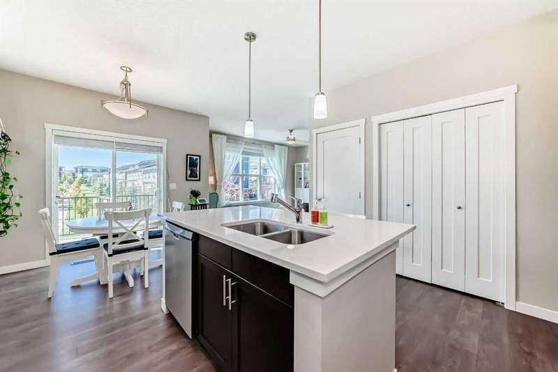 SUNLIGHT AND PATHWAYS DEFINE THIS THREE-STOREY TOWNHOME IN NOLAN HILL. With its WEST-FACING exposure, evenings here come with golden light spilling across the living room and straight onto the MAIN BALCONY — a space large enough for a barbecue and a proper seating area, whether that’s a bistro set for dinners outside or a couple of lounge chairs for end-of-day unwinding. When you want something more private, the SECOND BALCONY off the primary bedroom gives you a quiet perch above the pathways, perfect for morning coffee. Your own peaceful retreat with visitor parking directly out front, and gorgeous ravine pathways to the back of the property. Instead of a backyard that needs mowing, you get uninterrupted ACCESS TO A GREENBELT behind the complex. A central pathway links straight to Nolan Hill Pond and the wider community trail network — an easy launch point for dog walks, stroller loops, or a jog before work. Inside, the layout is designed to keep routines smooth. The ground floor collects the entries, garage, and mechanicals in one place, so the main living level feels open and uncluttered. Laundry sits just off the kitchen, making chores easier to fold into daily life. Both third-floor bedrooms come with their own ENSUITES, which means no waiting for showers and no awkward guest situations. The primary also adds a WALK-IN CLOSET, while the second bedroom doubles up with TWIN CLOSETS for extra storage. Parking is straightforward: a SINGLE ATTACHED GARAGE, a DRIVEWAY for another vehicle, plus a row of additional stalls directly across the roadway when visitors arrive. And because this unit sits inside the complex, on the quieter internal road, traffic is limited to neighbours — so evenings on the balcony feel private and calm. Around you, Nolan Hill offers more than just quiet streets. Within minutes you’ll hit MAJOR SHOPPING HUBS like Beacon Hill or Sage Hill Crossing (Costco, T&T Supermarket, Home Depot, restaurants). Stoney Trail makes commuting simple, and playgrounds and parks dot the neighbourhood for everyday outdoor time. This is the kind of LOW-MAINTENANCE TOWNHOME that gives you the best of both worlds: lock-and-leave freedom with greenspace and pathways right at your door. Book a showing, step onto the balcony, and enjoy the view for yourself!