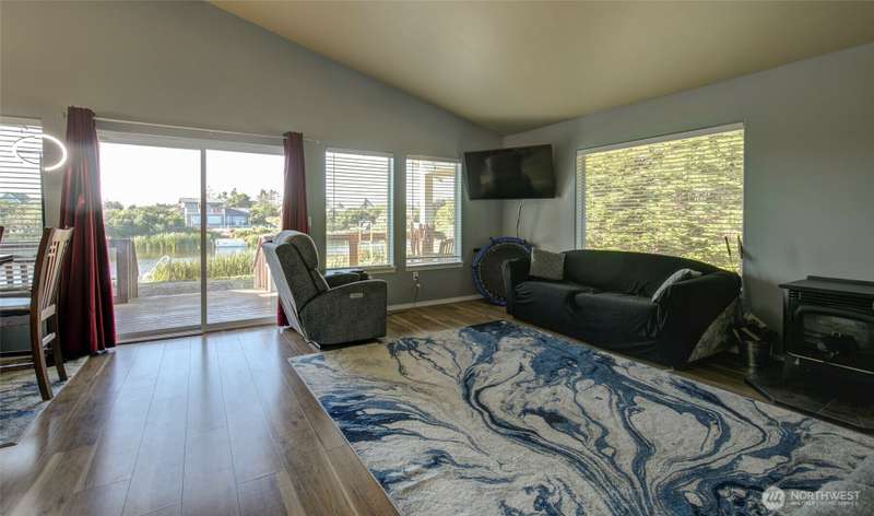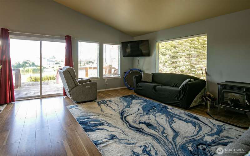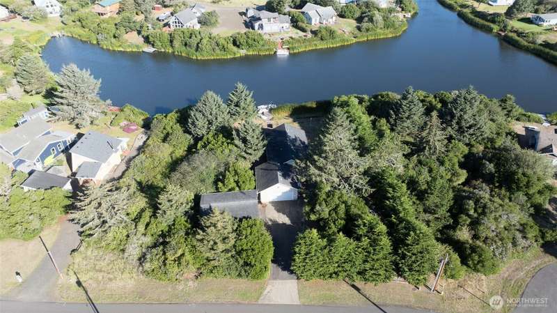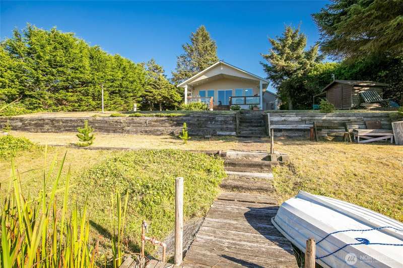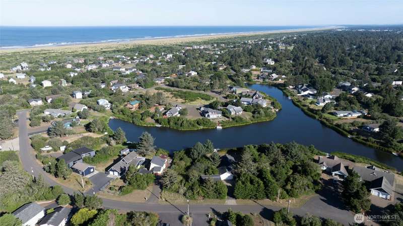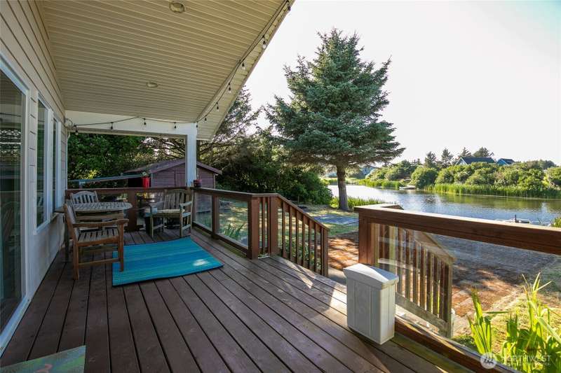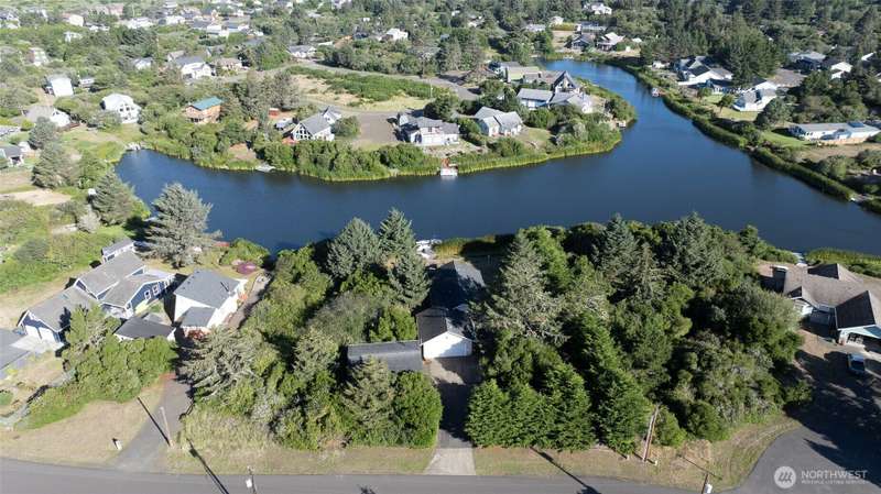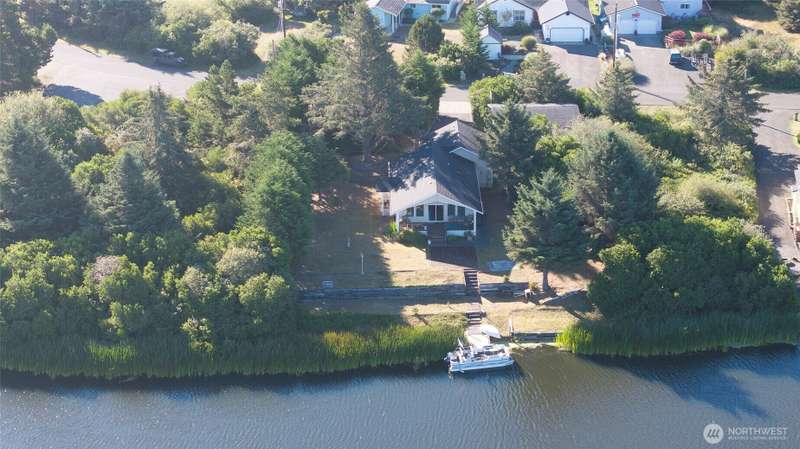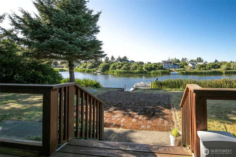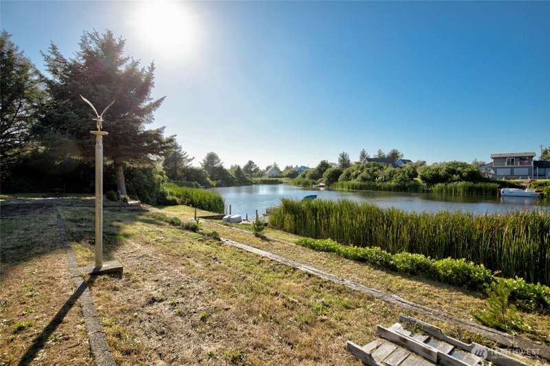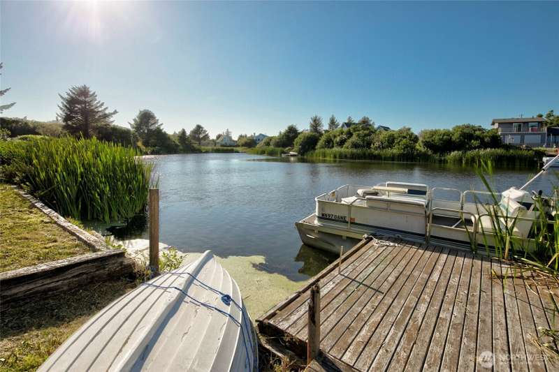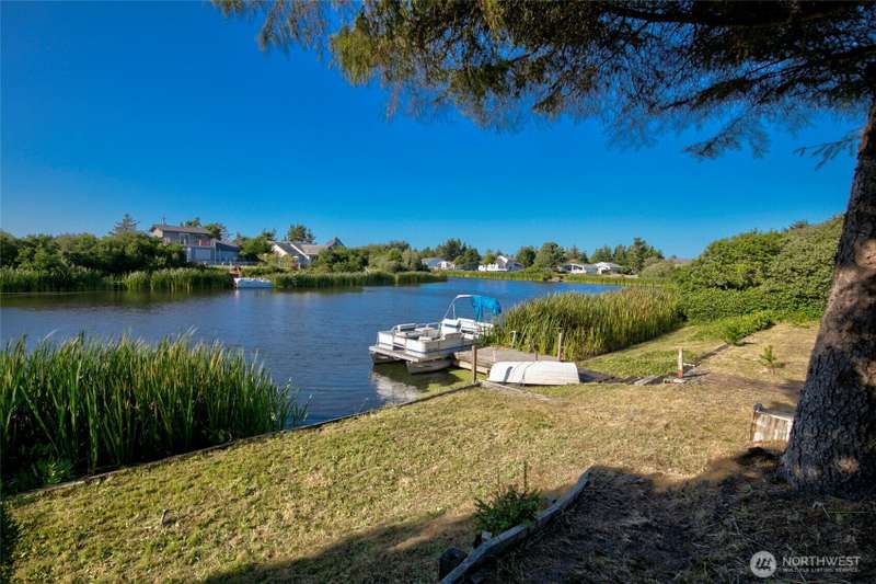 Park like setting, secluded on nearly a half-acre. 2 canal front lots offering 120 ft of terraced canal front with a dock, barbecue area, RV parking, RV garage plus shop. Inside this lovely single level home is a great room with a pellet stove and a slider out to the large, covered deck for summertime outdoor entertaining. Kitchen offers lots of counter space and with all of the large windows you have water views from practically every room. Also offered are two bedrooms, walk in closet, 1 1/2baths, large attached 2 car garage w/shop area, generator hookup, and a garden shed. Super area of town to walk your fur babies, ride bikes, close to shopping, the beaches, community club and so much more. Div 10 lots 361 and 362