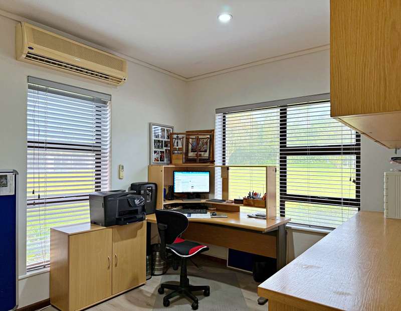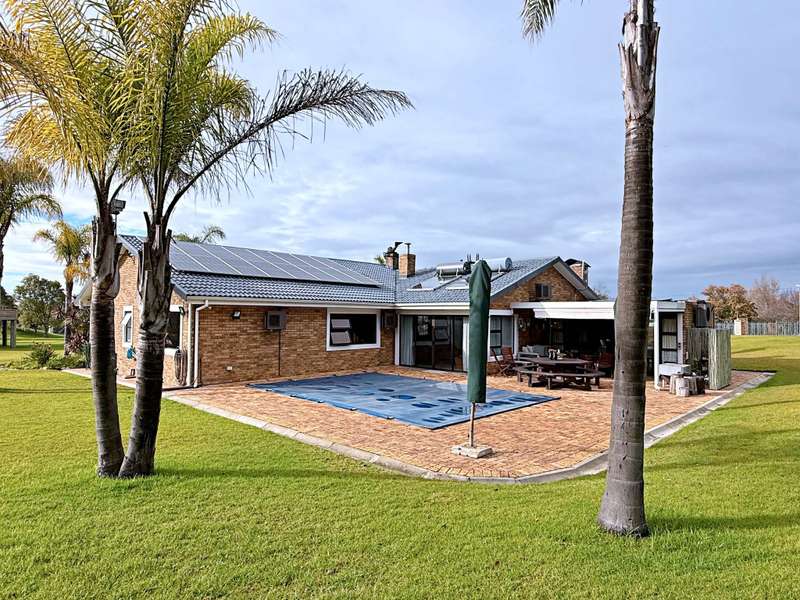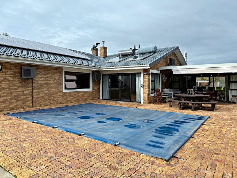 A modernised, Off-Gird Small holding with a windmill in Vierlanden, Durbanville, offering space and sustainable living for the family. The face brick property that has been beautifully upgraded, features three bedrooms, a study, two bathrooms, a guest toilet , an outdoor shower and toilet and three garages. Inside features: *Walk in fireplace - This large built-in fireplace inside the home is ideal for entertaining and adding warmth. *Air-conditioning- Has been installed throughout the property. *Interior upgrades - Laminated flooring throughout the property and upgrades include open-plan living. *Firewood storage - Large wooden crates with lids have been built to store firewood for easy access. *Loft in garage - Loft in garage offering extra storage space. *Garage upgrades - Floors have been redone and custom built cupboards. Security features: *Security - An electric fence surrounds the property. An alarm with outdoor beams is linked to Zonewatch. Bright security lights were installed. Should the alarm be activated, the lights activate, illuminating the yard. *Floodlights - Strategically floodlights ensure that the property is well-lit throughout the night, enhancing both security and visibility. *Cameras - 14 cameras outside and 2 inside being monitored inside. Outside features: *Landscape garden - Professionally landscaped garden with a small hothouse for a vegetable garden. *A custom built dam that provides irrigation to the garden. *Outdoor Lapa - Entertainment area with a new deck, pergola and retractable sails to shield from the wind. *Swimming pool - Nice size covered swimming pool. *Wendy house - Housing the irrigation system, electric fence energizer's and additional storage. *Boreholes - Three boreholes have been sunk - one for the household, one for the dam and irrigation and one for 'back-up" *Automated Irrigation system - An extensive irrigation system with a large circular supply pipe surrounding the entire plot to facilitate and improve watering. *Off grid water supply - Water filters and tanks have been installed allowing the home to function off the municipal grid for water consumption. *Solar system - A solar power system has been installed allowing the house to operate off the electric grid while feeding excess power back to the grid for consumption. *Pool Shelter - A covered structure has been added next to the pool offering shade and shelter. *Solar power pool pump - The pool operates independently from the main power supply due to a solar-powered pump, making this also off the grid. *Solar geysers - Solar geysers have been installed along with a geyser wise system. *Solar fountain - To add charm to the landscape, a Solar system has been installed on the Wendy house to power the fountain in the dam. If you are looking for a self-sustaining property to call home where entertaining is your dream, look no further! Call me to view.