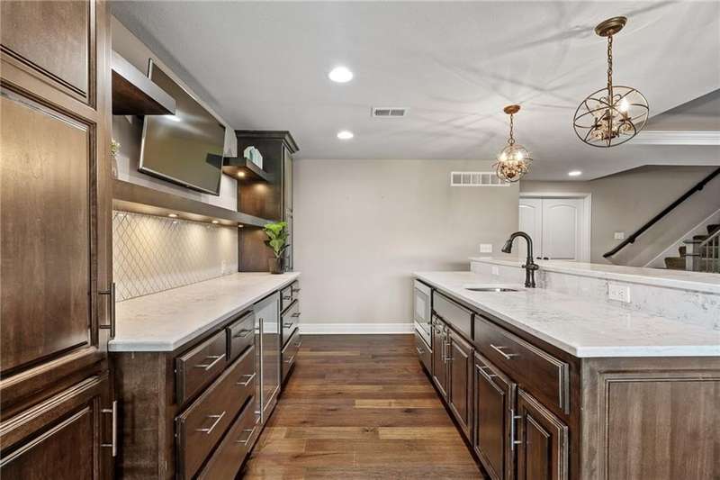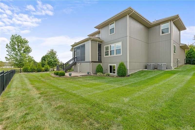 This 1.5 story beauty has it all and is priced to sell! Main floor includes thoughtful touches and well planned storage to ensure daily life is organized and convenient. This warm, welcoming home offers calm and quiet for relaxing evenings and spacious living areas for celebrating lifes big moments surrounded by friends and family. Screened deck w/fireplace. Fenced yard w/patio looks out to expansive green space. Primary suite w/shower, separate tub, split vanities, and custom walk in closet is a dream. Loft on 2nd level is spacious enough to be 2nd living/gym/game room to fit your househould. Basement living space w/wet bar/kitchenette and ample unfinished space for storage. laundry on main w/sink + 2nd laundry upstairs. Electrical avail in garage to install car charger.