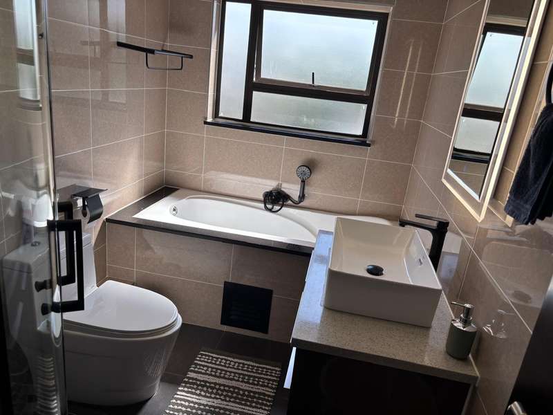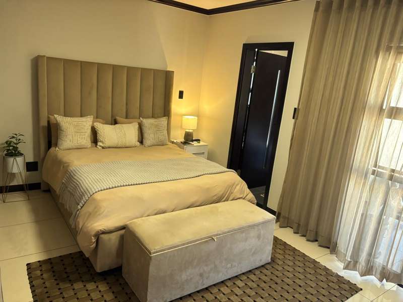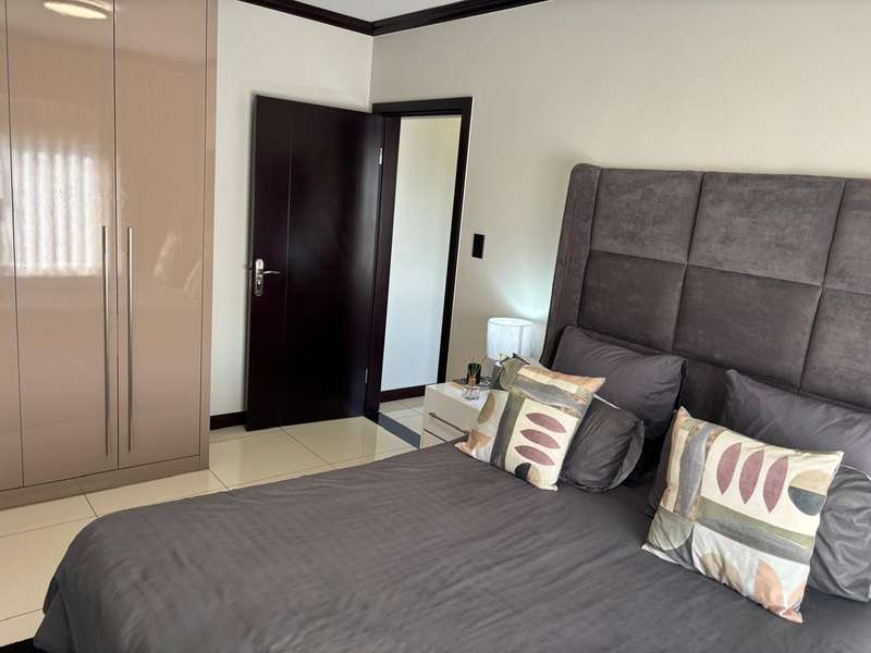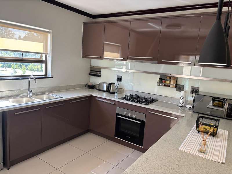 This immaculate 2-bedroom, 2-bathroom apartment in the heart of Carlswald offers luxury living with a perfect blend of style and comfort. Set in an upmarket, secure estate, this spacious home boasts top-quality finishes and beautiful design throughout. The open-plan, integrated living area flows seamlessly onto a covered balcony, perfect for relaxing or entertaining. The modern kitchen is a chef’s dream, featuring a gas hob and oven, built-in fridge and dishwasher, sleek cabinetry, and a stylish breakfast counter. Porcelain floor tiles add a touch of sophistication, enhancing the sleek, contemporary feel of the apartment. Both bedrooms are generously sized, with ample cupboard space, and the bathrooms are beautifully finished with modern fixtures—one of which is en suite to the main bedroom. Enjoy the tranquility of manicured gardens and take advantage of fantastic lifestyle amenities including a clubhouse, sparkling pool, and a small gym—ideal for active, modern living. The complex is well maintained with 24-hour security, controlled access, and dedicated covered parking for residents. Conveniently located close to top schools, shopping centres, and major transport routes, this apartment is ideal for young professionals or couples, seeking a secure, stylish lifestyle in one of Midrand’s most desirable suburbs.