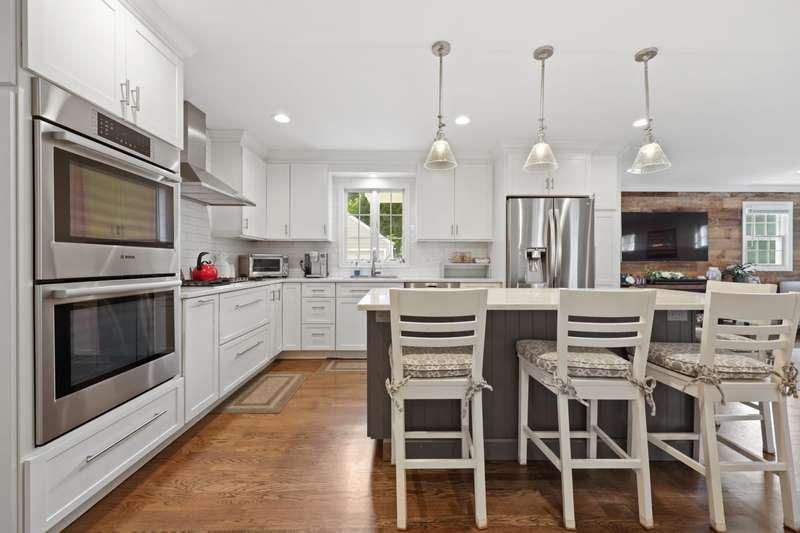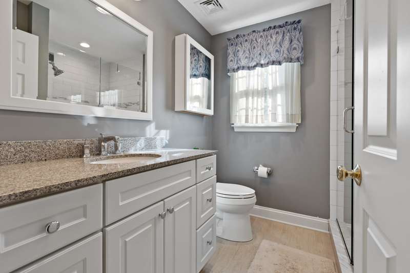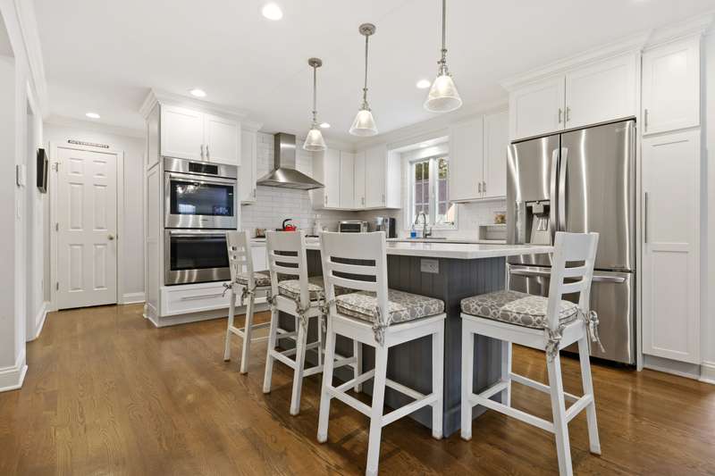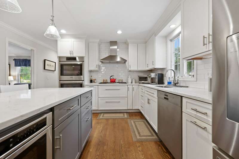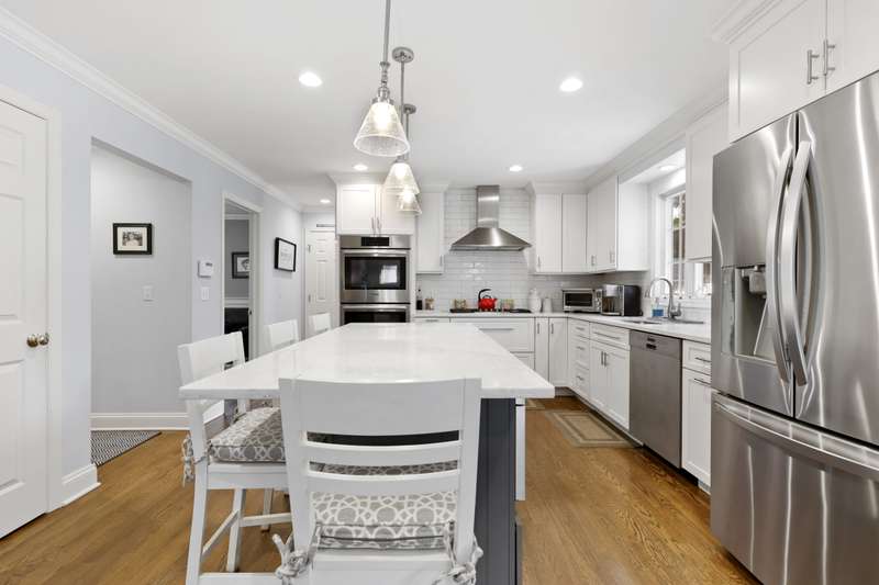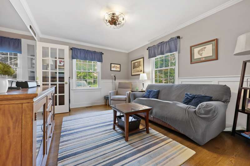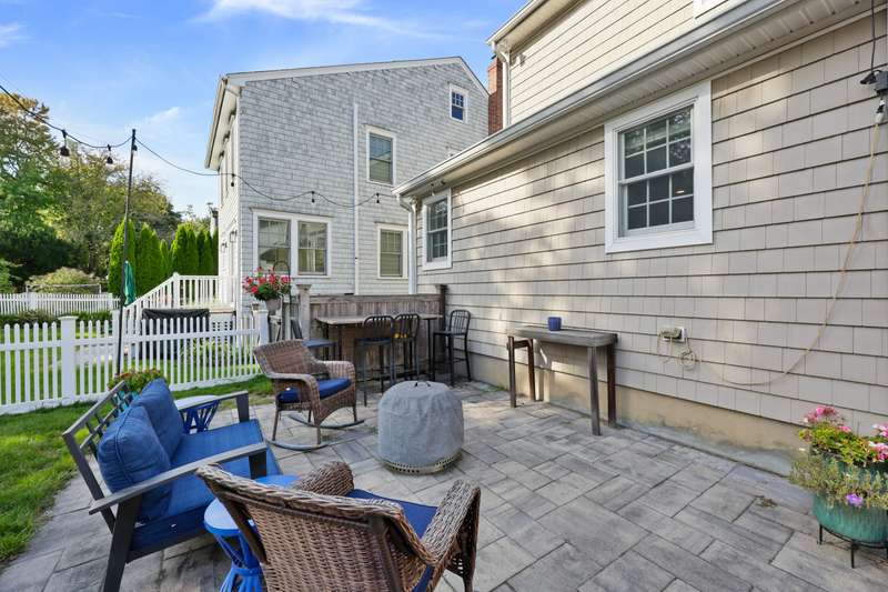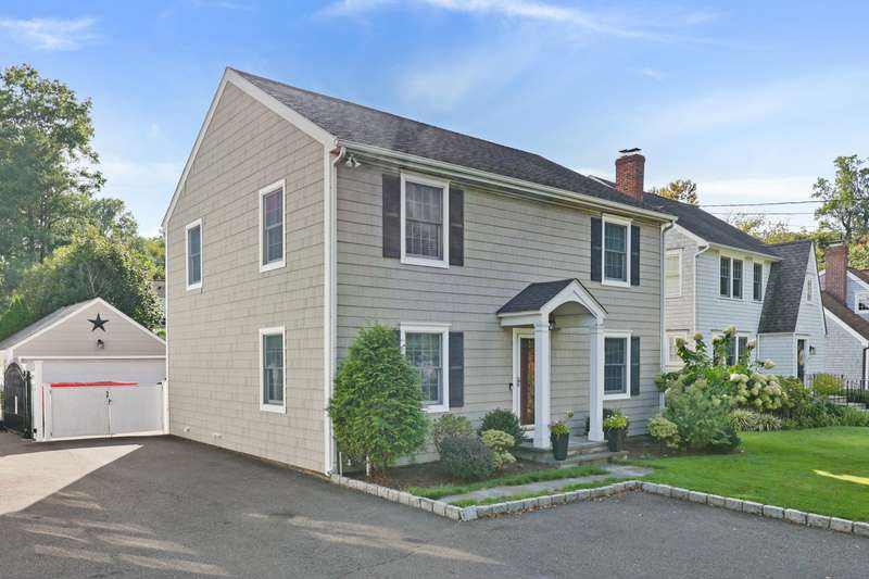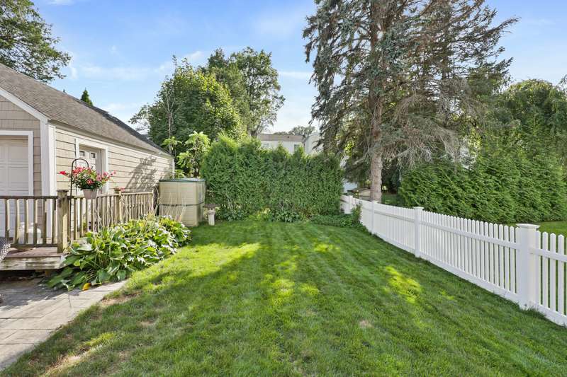 Tastefully renovated three-bedroom 1927 Colonial with stone terrace and fenced-in backyard is conveniently located in a sought after school district with sidewalks to library, Binney Park, train and village. Gracious 1,928 sq. ft. interior showcases main level red oak floors and 2018 remodel which includes two new full baths, new open plan Quartz-clad kitchen with center island seating, Bosch and LG appliances that seamlessly extends into expanded living room with mudroom and dining room. First floor also features an inviting center hall entry, den/playroom off the kitchen, half bath and pantry. Primary suite with two walk-in closets and bath; two bedrooms and full hall bath comprise second floor. Lower level offers versatile storage space and laundry. Detached two car garage.