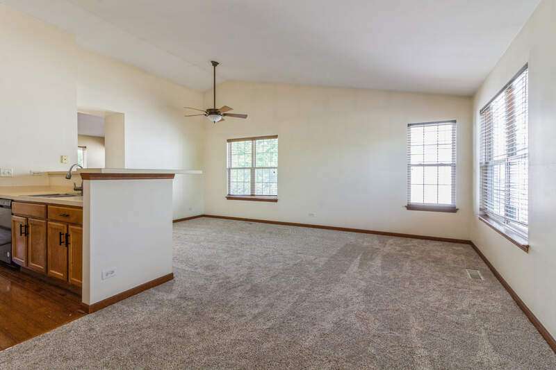 Discover The Enclave at Country Lakes-a beautiful and inviting townhome community nestled in North Naperville, just moments from the intersection of Route 59 and North Aurora Road. This 2-bedroom, 2-bathroom 2nd-floor ranch-style end unit offers unmatched convenience with quick access to the Route 59 Metra station, I-88, and an array of shopping, dining, and entertainment destinations, including Target and Lifetime Fitness. Surrounded by peaceful natural landscapes, the townhouse is situated by nearby scenic Country Lakes Forest Preserve and protected wetlands, providing serene views and direct access to public walking trails. The community is also adjacent to a former golf course, Country Lakes Park, and a Naperville city playground-offering the perfect blend of relaxation and recreation. Step inside to an open-concept layout with soaring vaulted ceilings, creating a bright and spacious living environment ideal for both everyday life and entertaining. The kitchen boasts tall upper cabinets, a pantry, and a convenient breakfast bar that flows effortlessly into the main living space. Step out onto your private deck to enjoy lush green surroundings and fresh air. Located within the acclaimed Naperville School District 204-featuring Longwood Elementary, Granger Middle, and Metea Valley High School. The home features newer carpeting and is move-in ready! Available immediately. Minimum 1-year lease. No pets or smoking allowed. Applicants must have a credit score of 700+ and a monthly income of at least 3 times the rent.