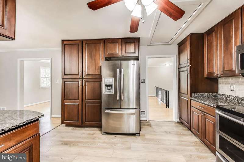 Updated all-brick 2,741-SF split foyer with 4 bedrooms, a bonus room, 2.5 bathrooms, and a deep 1-car garage with NO HOA. Main level offers a generous living room w/ crown molding; a refreshed kitchen w/ plentiful cabinets, stainless-steel appliances (including French door fridge-over-freezer, double-oven range w/ electric cooktop, built-in microwave, and dishwasher), and granite counters; a dining room with crown molding and a ceiling fan; the primary bedroom with two closets and an en-suite bathroom (with heated/lighted mirror, and walk-in shower with rain shower head and body jet); bedroom two, bedroom three; and a second full bathroom. Fully-finished, walkout (3 ways) basement features a spacious family room with custom built-in cabinets and fireplace (wood-burning insert), recreation room with custom built-in cabinets, wet-bar with mini-fridge, and an Andersen sliding-glass door (w/ built-in blinds) access to the backyard; fourth bedroom w/ ceiling fan; an office/bonus room (previously bedroom 5--closet, which was niched into the garage removed) w/ storage shelves & second full-size fridge; a half bathroom (could be converted into a full bathroom); a laundry/utility room w/ utility sink (washer/dryer convey); and access to the oversized one-car garage (with front- and backyard access and a nearly-unused sub-panel). Hardwood floors on the upper level (primary bathroom has ceramic tile) & stairwells. Brand-new luxury vinyl plank flooring in the foyer, kitchen, bathrooms and basement. Updated bathrooms. Updated hardware and all-new ""choose your shade"" (five options between 2700K - 6500K) light bulbs throughout. Freshly painted. Large, fully-fenced backyard offers a deck, covered deck, patio w/ a firepit, a play set (swings, slide, rock wall, climbing rope & club house), and two sheds. Freshly-paved driveway. Roof (Aug 2021), fireplace stove insert (Oct 2021), HVAC (2018) & water heater (2018). Walk to the weekly farmers market. Walk, jog, or bike the nearby 18-mile paved Mount Vernon trail along the Potomac River. Convenient DMV location with easy access to I95, I295, I395, I495. METRO: Multiple bus stops as close as 0.1 mi.; Huntington Metro (yellow line--3.9 mi.; and King Street Metro (blue & yellow lines)--6 mi.. AIRPORTS: DCA--9.6 mi., IAD--36 mi., and BWI--42 mi. MILITARY: Ft Belvoir--4.7 mi., USCG NAVCEN--5.7 mi., JBAB--11 mi., Pentagon--11 mi., Ft Myer--12 mi., WNY--13 mi., 8th & I--13 mi., Ft McNair--13 mi., JBA--17 mi., Ft Meade--36 mi. HOSPITALS: INOVA Mt Vernon--0.5 mi., INOVA Alexandria--8.8 mi., GW University--13 mi., MedStar WA (or Georgetown)--16 mi., Sentara NOVA--17 mi., VA Hospital Center--17 mi. NOTE: During snow, this road is plowed several times an hour, which is great if you have a job you can't call out from due to snow (a no-fail mission).