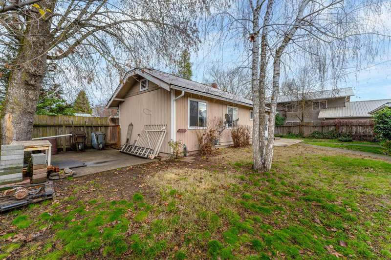 Charming 2 bedroom, 1 bathroom home in the heart of Grants Pass! The unique character honestly makes the home stand out. This home would make for a wonderful starter home or investment property! Enjoy the spacious, fully fenced yard and detached garage with alley access. Large back yard patio with sidewalks to garage and alley parking. The property is zoned R-4. convenient to shopping, restaurants, and more. All information is deemed reliable. It is suggested that any one considering the purchase of the property, perform due diligence regarding the uses and condition of the subject property