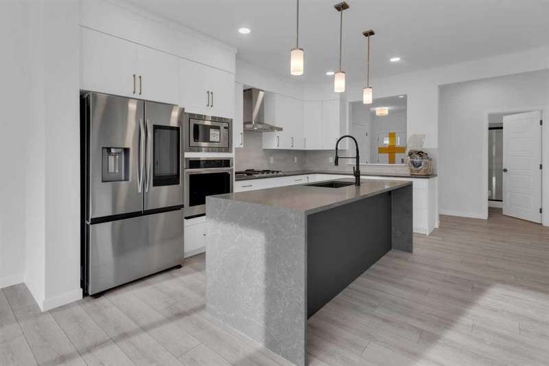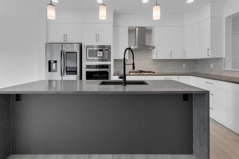 Nestled in the vibrant Northeast community of Livingston...enjoy the benefits of living in an established neighborhood that brings a plethora of amenities right to your doorstep, along with swift access to major highways. Welcome to the COLLINGWOOD – a BRAND-NEW home built by Excel homes. This amazing family home has it all – it’s LOADED WITH UPGRADES – has a SOUTH EAST FACING BACKYARD and a SEPARATE ENTRANCE TO FULLY DEVELOPED LEGAL BASEMENT SUITE!!! This home offers 2230 sf & is delivered in an open plan, designed for families & entertaining. This impressive home offers FIVE BEDROOMS...FOUR of the bedrooms on the upper level with an ADDITIONAL bedroom and FULL BATH on the main floor. The kitchen is a show stopper with huge waterfall island, built in SS appliances, gas cooktop & loads of cabinets and drawers for storage. In addition, the main floor boasts a pantry with summer / spice kitchen that offers storage cabinets, stove/hood fan and sink! You’ll notice the back of the house is almost entirely windows, flooding this home w/natural daylight. Exit to your SOUTH EAST FACING backyard thru the oversized patio doors. The family room & dining area are connected & offer huge family / entertaining potential. 9’ ceilings & gorgeous luxury vinyl plank flooring make this space airy & bright. Upstairs you’ll find FOUR spacious bedrooms! The primary suite is separated from the 3 others by a huge bonus room. The primary suite also features an amazing spa like ensuite w/dual sinks, beautiful tile skirted soaker tub & separate shower. Your laundry room (with folding counter) & family bathroom complete this level. THE BASEMENT is fully developed & has a PRIVATE / SEPARATE side entry that leads to your 2-bedroom LEGAL suite, perfect for rental income, extended family or a live-in nanny! This level is built to upstairs standards & features TWO BEDROOMS, a FULL KITCHEN (w/SS appliances), FAMILY ROOM, laundry & 4 PCE BATH. All utilities are separate from the main floor – 2 furnaces & hot water tanks & laundry. Whether you're a growing family, savvy investor, or multi-generational household, this is the home you've been waiting for. With over 35 years of experience, over 15,000 homes built & 75 awards for design & industry excellence, Excel Homes is a wise choice!