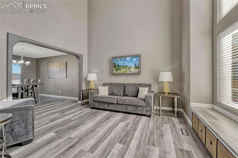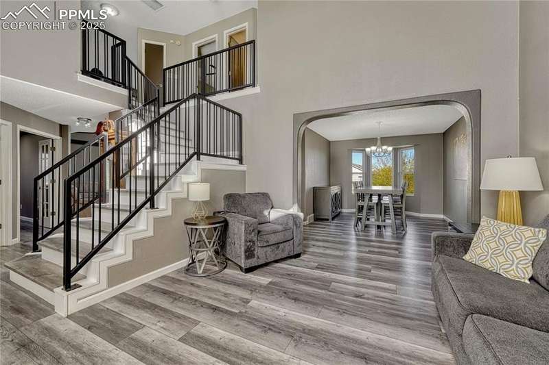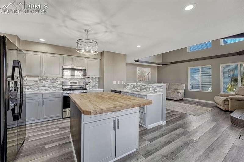 This updated two-story offers abundant natural light, a functional layout for entertaining, and a resort-style primary suite. The open kitchen flows seamlessly onto a massive composite deck, creating the perfect indoor-outdoor connection for gatherings of any size. Inside, you’ll appreciate the vaulted ceilings, modern metal railings, and new LVP flooring throughout the main level. The formal living and dining areas transition into an open-concept kitchen and family room anchored by a gas fireplace. The kitchen features quartz countertops, a butcher-block island, mosaic tile backsplash, pantry, and stainless gas range. A main-level flex room serves well as an office or playroom. Upstairs, the vaulted primary suite is a true retreat with a walk-in closet and a spacious bath featuring dual vanities and an oversized dual-head shower. Two additional bedrooms, a full bath, and laundry round out the upper level. The walk-out basement expands your options with new carpet in the large family room, two conforming bedrooms, a stylish ¾ bath, and a kitchenette for snacks, drinks, or guest use. Outside, enjoy the composite deck with metal frame, lower patio, mature trees, fenced yard, and plenty of room to garden or play. The 3-car garage provides space for vehicles, storage, or a workshop—and a new roof will be installed prior to closing. This well-designed, move-in ready home checks all the boxes.