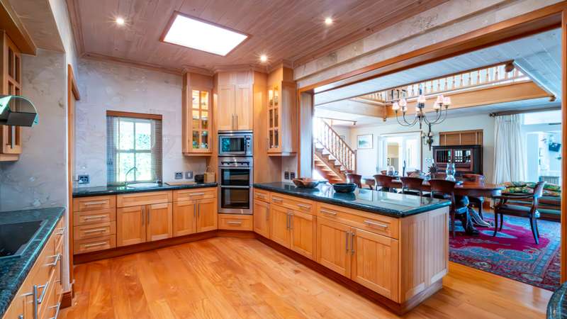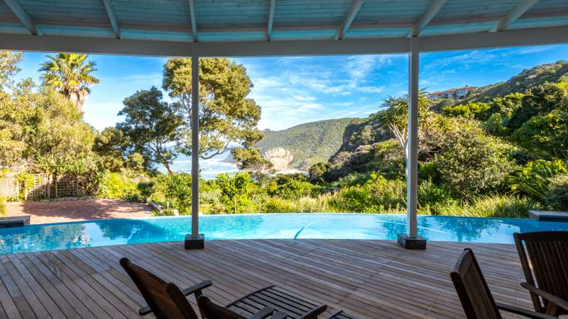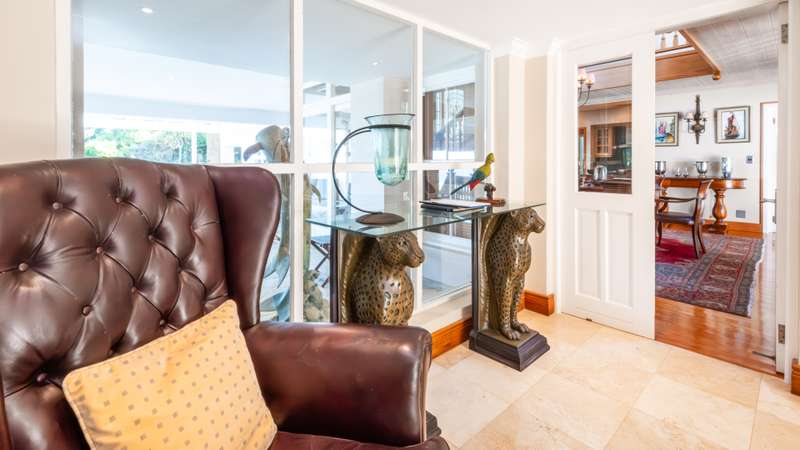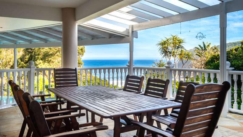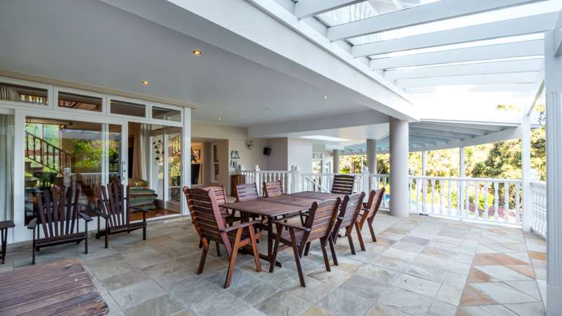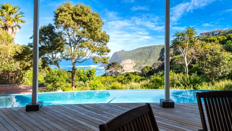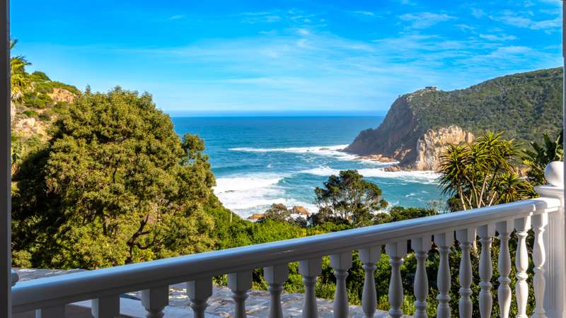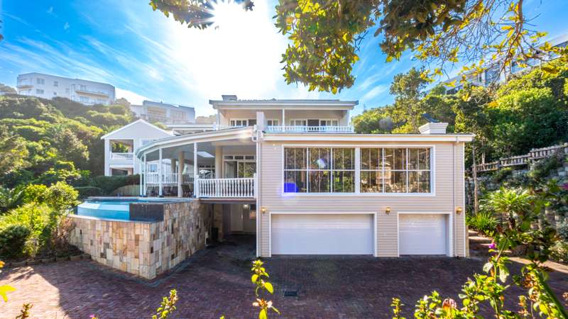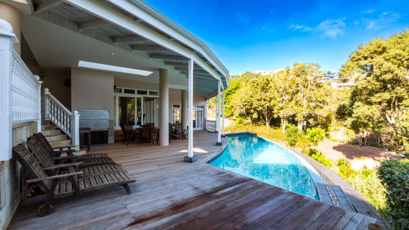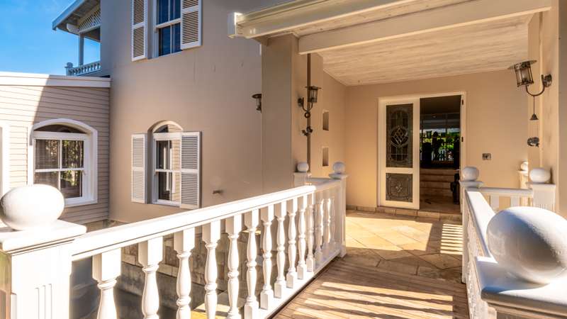 Joint Mandate Magnificent Coastal Residence with Uninterrupted Views and Tropical Ambience This extraordinary property includes a separate vacant erf located in front of the main house, ensuring your breathtaking views of the Knysna Heads and ocean can never be obstructed. The sale includes the furniture with exception of some items. Features at a Glance: Ground Floor: Automated access gate and fully paved driveway with ample under-paving parking Double and single automated garages with direct staircase access to the first floor Under-roof carport Tropical landscaping with palm trees and indigenous plants, creating a Caribbean villa feel First Floor: Striking paved walkway across a bridge with fish infinity pond leads to the grand entrance Elegant formal lounge with fireplace opening onto a generous patio Recreation room with fireplace and built-in bar, flowing out to the entertainment patio Expansive covered patio with built-in braai, infinity pool, and spectacular sea and mountain views A magnificent double-volume dining room with fireplace and staircase to the upper level, opening onto the upper patio Designer chef’s kitchen with granite tops, walk-in pantry, separate laundry and scullery Two spacious bedrooms, each with full en-suite bathrooms, private lounge areas, and balconies Second Floor: Two additional bedrooms, each with full en-suite bathrooms and private balconies Luxurious master suite featuring a private study with fireplace and balcony Walk-in dressing room Full en-suite bathroom with double vanity (his and hers basins) Private balcony and fireplace Basement: Large wine cellar This remarkable home is designed to blend luxury, privacy, and natural beauty. All balconies and entertainment areas offer magnificent views of the infinity pool, landscaped gardens, and the sparkling ocean. An exceptional opportunity to own a home that offers both seclusion and grandeur in one of the most sought-after coastal regions in South Africa. A definite Guest House opportunity exists. Floorplans included, with estimates sqm measurements. Contact us today for an exclusive viewing.