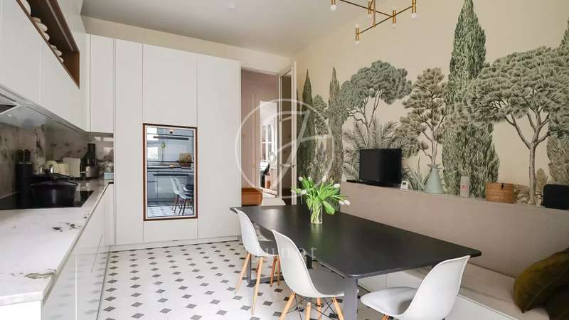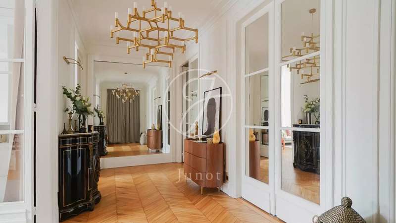 On the edge of the 5th and the 6th arrondissements, located in the immediate vicinity of the Luxembourg Gardens, a remarkable 198.02m² loi Carrez family apartment on the first floor of a beautiful, well-maintained old building. This property, with its generous volumes and old-world charm, benefits from a harmonious layout and recent renovation. The entrance gallery leads to a vast double reception room comprising a living room and a dining room, extended by a large separate, fully-equipped kitchen. The master suite, overlooking the plant-filled courtyard, features a double dressing room and en-suite shower room with toilet, creating a warm and intimate space. The night area also features three other generously-sized bedrooms, also overlooking the courtyard. The first two each have their own shower room, and the last one has its own bathroom. The hallway features a relaxation or office area, a laundry room and two separate toilets. Circulation is optimized and spaces perfectly designed for comfortable family living. Calm, functionality and elegance come together in this rare apartment, ideally located close to shops, transport and schools such as L'Alsacienne, Sévigné and Lavoisier. A cellar completes this offer.