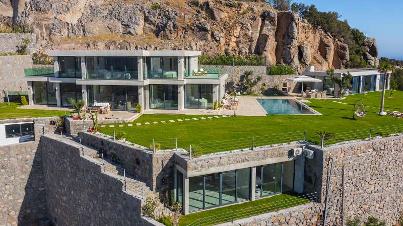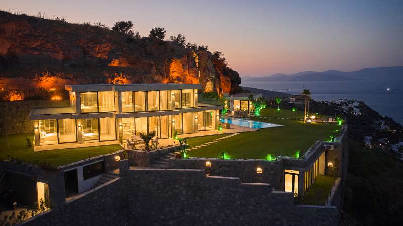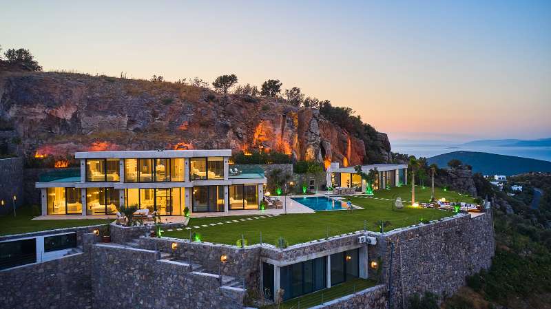 The mansions are located in Turkbuku, one of the most popular areas of Bodrum, Mugla. Turkbuku is also known as the Saint-Tropez of Turkey. It is located on the Turkish Riviera, on the opposite side of the Bodrum Peninsula. It also has a well-protected harbor surrounded by high hills. There are many hotels and holiday villages in the region.