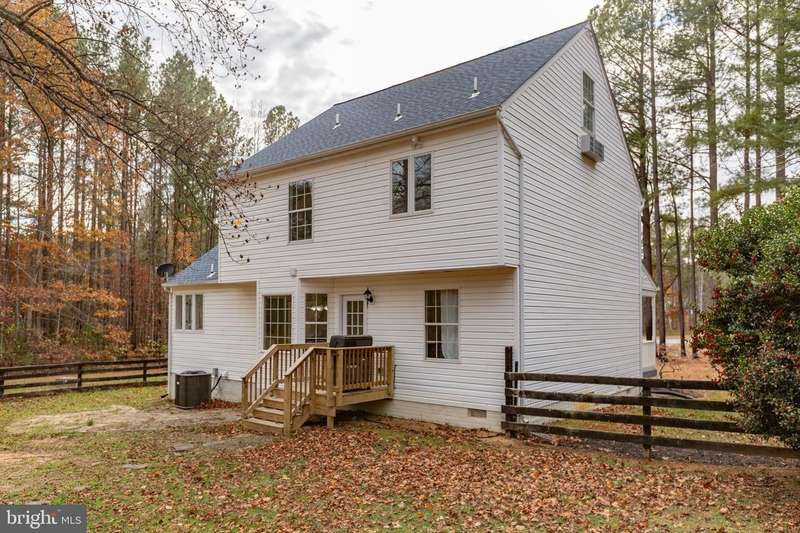 This 5-bedroom, 2.5-bath Colonial sits on 3.3 peaceful acres in a quiet cul-de-sac. A large covered front porch welcomes you into a spacious layout featuring a sunken living room, formal dining room, and a cozy family room off the stunning eat-in kitchen with vaulted ceilings. The kitchen is a true highlight, boasting granite counters, stainless steel appliances, and expansive windows that overlook the scenic rear acreage, perfect for cooking and entertaining. Upstairs, the primary suite features a generous walk-in closet with dual entrances and a private bath complete with a dual-sink vanity, soaking tub, and separate shower. Three additional bedrooms and a full hall bath complete this level. A fifth bedroom sits on the third level and offers incredible flexibility, ideal as a home office, homeschool room, gym, game room, or an extra lounge/living area. The walk-in closet also provides access to the attic storage. The property includes a 2-car garage, fenced rear yard, and a shed for additional storage. The acreage is half cleared and half wooded with both pine and hardwood trees. Peace, privacy, and plenty of usable space make this a wonderful place to call home.