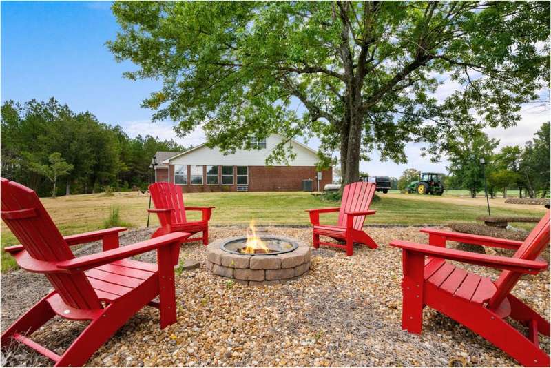 Beautiful 4-bedroom, 3.5-bath ranch home on 17 acres with two scenic ponds located at the front of the property. Home features an open-concept living and dining area, a spacious kitchen with ample cabinetry and eat-in area, and a large rec room with abundant natural light.The primary suite includes a full bath with double sinks, soaking tub, separate shower, plus an additional half bath and dedicated laundry room. Two propane fireplaces add warmth and charm.Enjoy the outdoors from the covered front porch or gather around the backyard fire pit. Attached oversized 2-car garage plus a detached 2-car garage offer plenty of storage and workspace.A rare opportunity to own a peaceful country property with space, privacy, and beautiful water views.