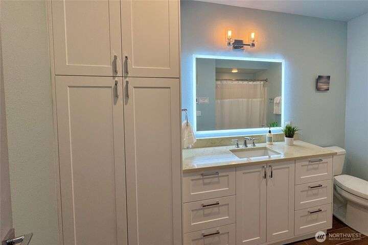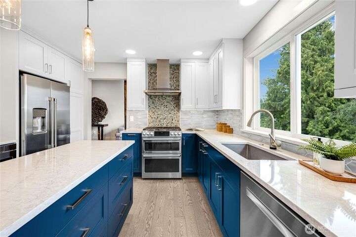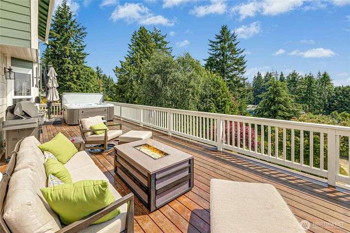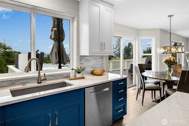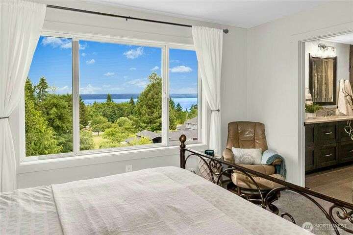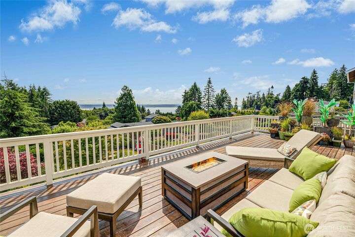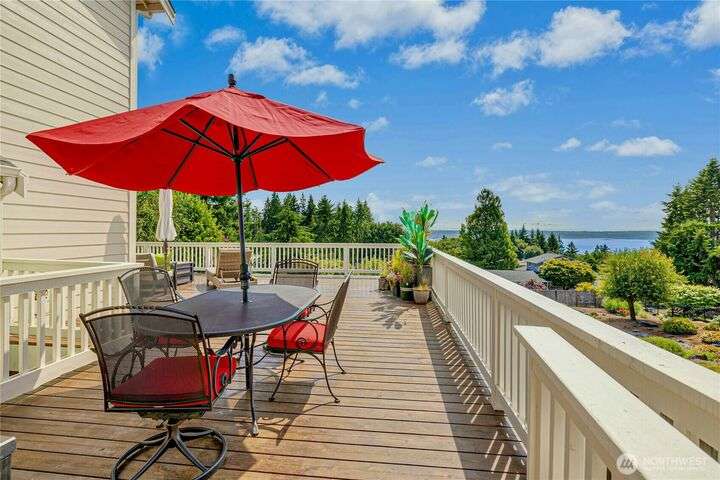 Rates are DOWN & so is the PRICE, on this Stunning water view home in Kingston's premier Skyline neighborhood, minutes to ferries! Enjoy breathtaking Sound, Seattle & Mt. Rainier views from generous deck & nearly all windows in this brilliantly remodeled home. New chef’s kitchen w/ gleaming quartz, stainless appliances & walk-in pantry. Custom cabinetry throughout & New Roof. Serene primary suite w/luxury spa-like bath & large WIC. 3 additional bedrooms (one downstairs w/WIC) & 3 bonus spaces for ultimate flexibility. Time on the 900sf wrapped East & South-facing deck is a vacation: sip coffee, dine, sunbathe or enjoy the hot tub. Quiet & walkable to ferries, dining, beach & parks. Perfect Multi-Gen or Work-from-Home & it is Move-in ready!