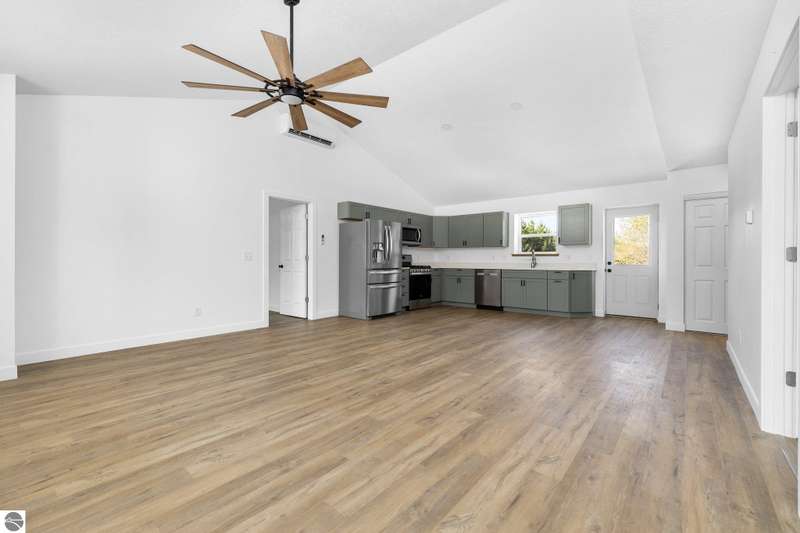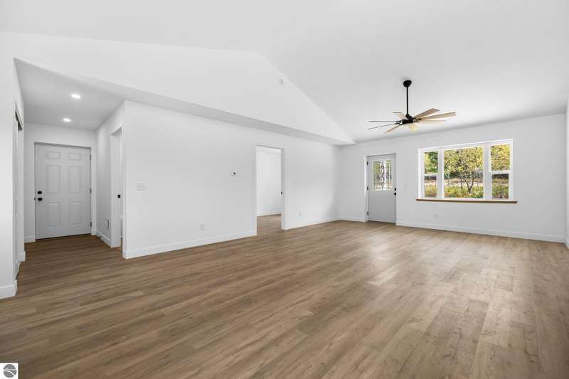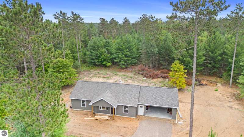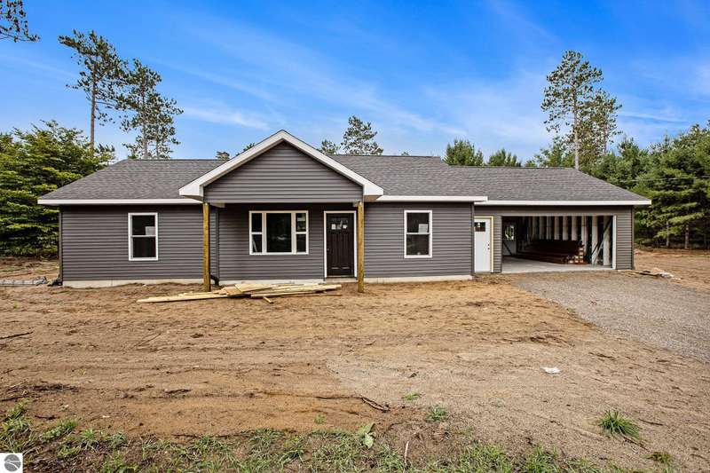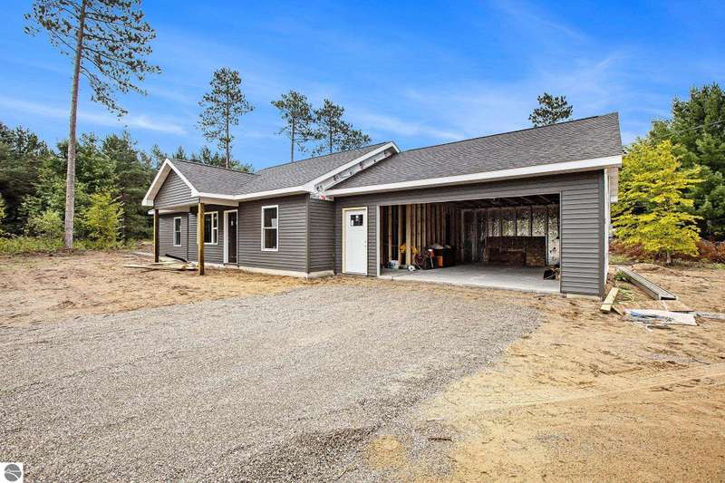 Under Construction Ranch at 3494 Gleaner Hall Rd, Kingsley, MI 49649 Discover a brand-new, 1,171 sq ft ranch-style home on a 2.5-acre lot in serene Kingsley, just south of Traverse City. Estimated completion is Dec 15, 2025. This 3-bed, 2-bath home features a 444 sq ft unfinished garage, built on a slab with durable concrete Superior Walls, vinyl siding, asphalt shingles, and vinyl windows. Energy-efficient with R-37 wall and R-50 ceiling insulation, it has a furnace with central A/C, on-demand water heater, well, septic, and electric/propane utilities (propane will be buyer-established). The layout offers a 222 sq ft living room, 146 sq ft kitchen with white cabinetry and laminate counters, 131 sq ft primary bedroom with 72 sq ft bath and 15 sq ft closet, plus two bedrooms (166 & 145 sq ft). Features carpet in bedrooms, luxury vinyl plank flooring elsewhere, and LED lights. No appliances included, but prepped for electric stove and fridge with water/ice hookup. Enjoy a 5x10 concrete front porch and a 10x20 concrete back patio, Construction is at rough-in framing, with siding due early Sept 2025. Customizations are possible before material orders (cabinets by 9/19/25), with minor cost increases. Earnest money buyers get walkthroughs and punch lists; otherwise, sold as-is with a 1-year warranty. Photos of similar spec homes showcase the builder's quality. Come and see this durable, efficient home!