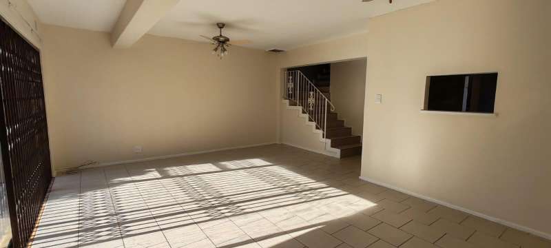 This lovely property consists of: - 3 Spacious bedrooms with ceiling fans - 2 Bathrooms: 1 family bathroom and 1 en-suite in the main bedroom (with bath, shower, and toilet) - Ample storage with built-in cupboards - Open-plan lounge and dining area - Modern kitchen - Paved exterior for a neat finish - Lovely balcony with scenic views - Secure property with fenced perimeter and access gate - 1 garage and 1 open parking space - Pet-friendly (1 small dog, subject to approval) This property offers a perfect blend of comfort, style, and security!