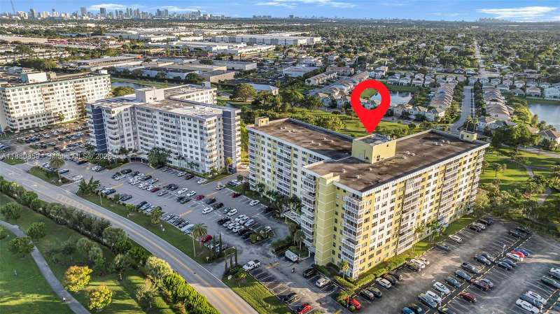Enjoy South Florida living with beautiful views from sunrise to sunset! Check out the Hard Rock Casino and Hard Rock Stadium from your large windows and open floor plan! Amazing 2 bed, 2 bath condo with tile flooring + upgraded light fixtures. Lovely updated kitchen w/granite counters, SS appliances, and stone tile backsplash. Oversized primary bedroom with 3 closets, makeup vanity, new ceiling fan and a tub/shower combo! Great 2nd bedroom that has guest bathroom w/walk-in shower. Laundry and storage unit a few steps away. Enjoy secured building with lobby guard, heated pool, tennis courts, and walking and biking trails. Centrally located to I-95, Turnpike, FLL Airport, Gulfstream & Hard Rock Casinos, Hollywood Boardwalk, Aventura Mall & Las Olas Blvd. All ages welcome!