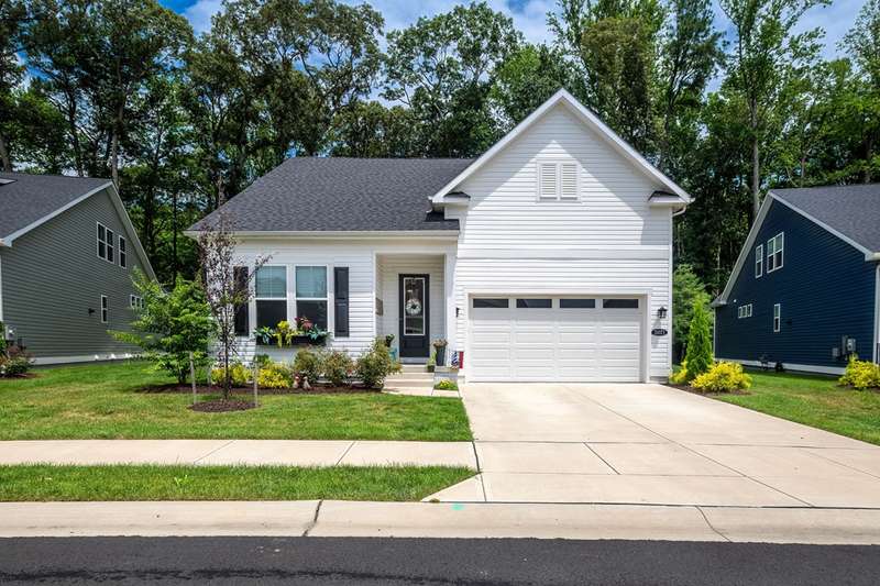 Better than new! Welcome to 31071 Silver Maple Drive in Lewes’ resort-style community of Chase Oaks! This upgraded 3-bedroom, 3-bath home with a finished basement offers around 3,000 sq. ft. of stylish, low-maintenance living on a premium wooded lot with mature trees. Inside, you’ll find LVP flooring throughout, a bright office with French doors, a spacious guest bedroom and an upgraded full guest bath, along with several upgrades. The chef’s kitchen boasts quartz countertops, extended glass-front cabinets, a farmhouse sink, SS appliances, a pot filler, upgraded hardware and large island—flowing seamlessly into the vaulted great room and dining area. The private owner’s suite overlooks the woods and features a custom walk-in closet and spa-like bath with an upgraded double vanity, frameless tiled shower with dual heads and a Roman bench. Downstairs, in the finished basement, enjoy a huge recreation room, a full bath with an upgraded tiled shower, bright and airy bedroom and two additional storage rooms. Outdoors, relax in your serene fenced yard backing to the mature woods for lasting privacy. Extras include: 2-car garage, tankless water heater, full irrigation, and energy-efficient 2x6 construction. Chase Oaks amenities include a resort-style pool with cabanas, clubhouse with gym & bar, pickleball courts, and scenic walking paths. The HOA covers internet and irrigation water for added savings. All window treatments are also included—schedule your tour today and discover unmatched value at just $196/sq. ft. of finished space!
