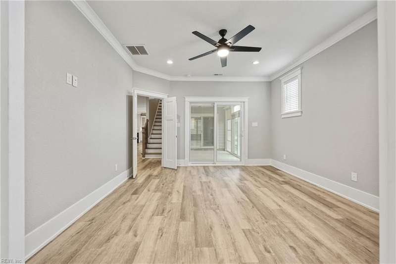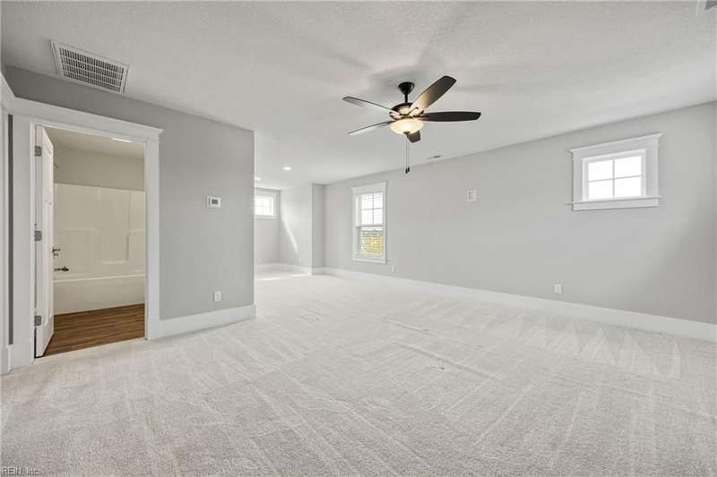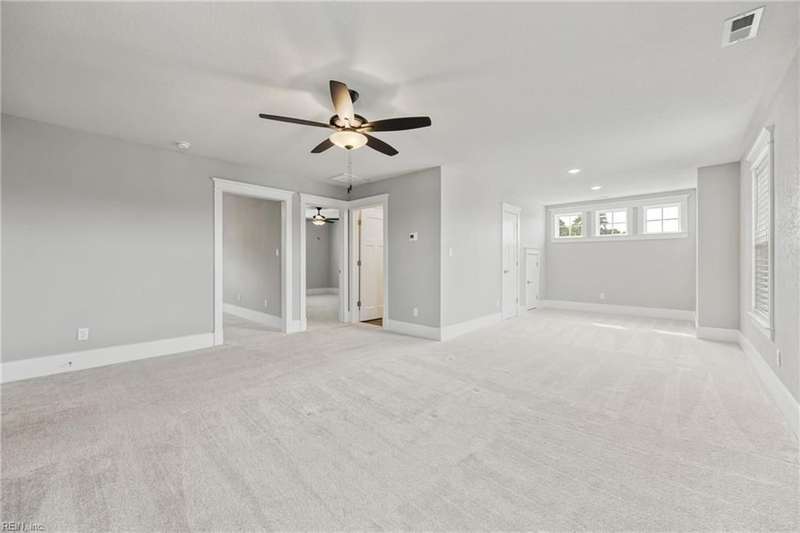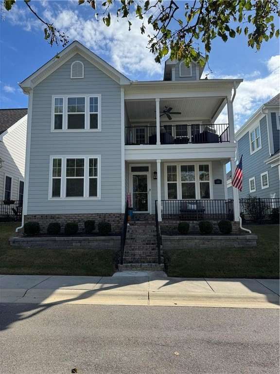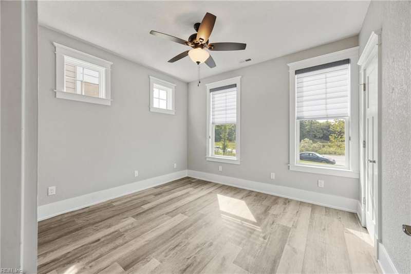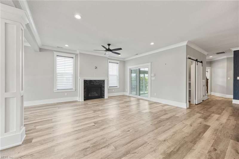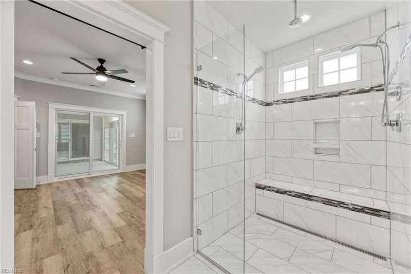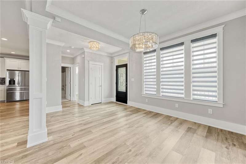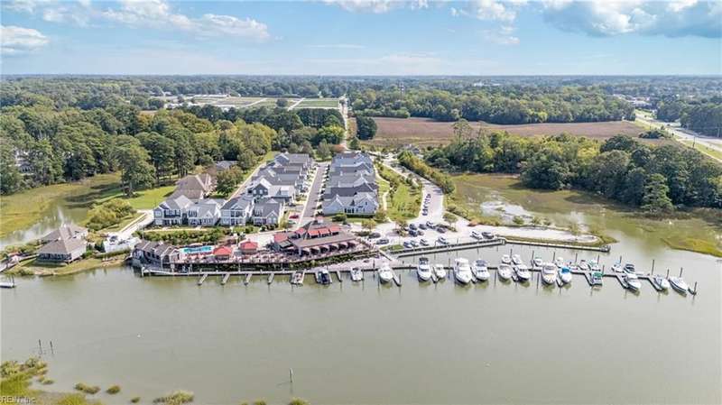 Pristine Nansemond model on a corner lot with river views! Move-in ready with upgrades throughout. First-floor primary suite with walk-in closet, double vanity, and tile shower, plus an additional bedroom and full bath downstairs. Open kitchen with upgraded cabinets, induction cooktop, double oven/microwave combo, oversized island, and butler's pantry with wine rack & fridge. Great room with gas fireplace, stunning sunroom with patio access (Slab and hook up ready for a hot tub!). Upstairs features a loft, bedroom, full bath, bonus room/office, and walk-in attic. During construction, extra insulation was added to the side of the home facing the marina. You won't want to miss this one!