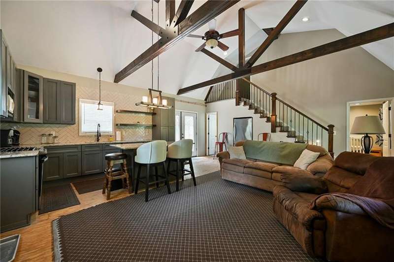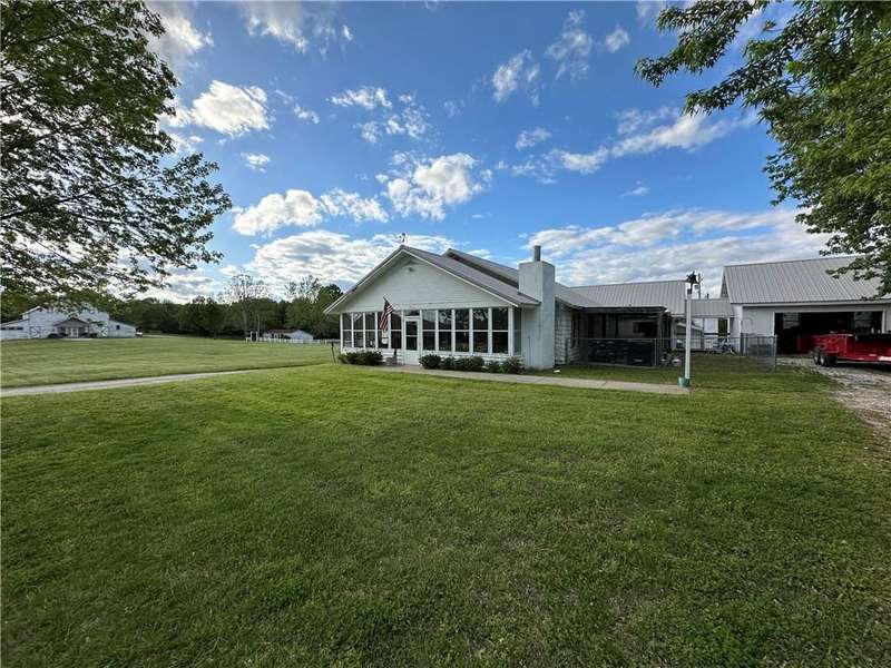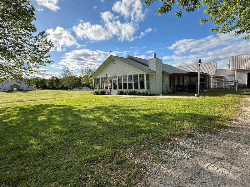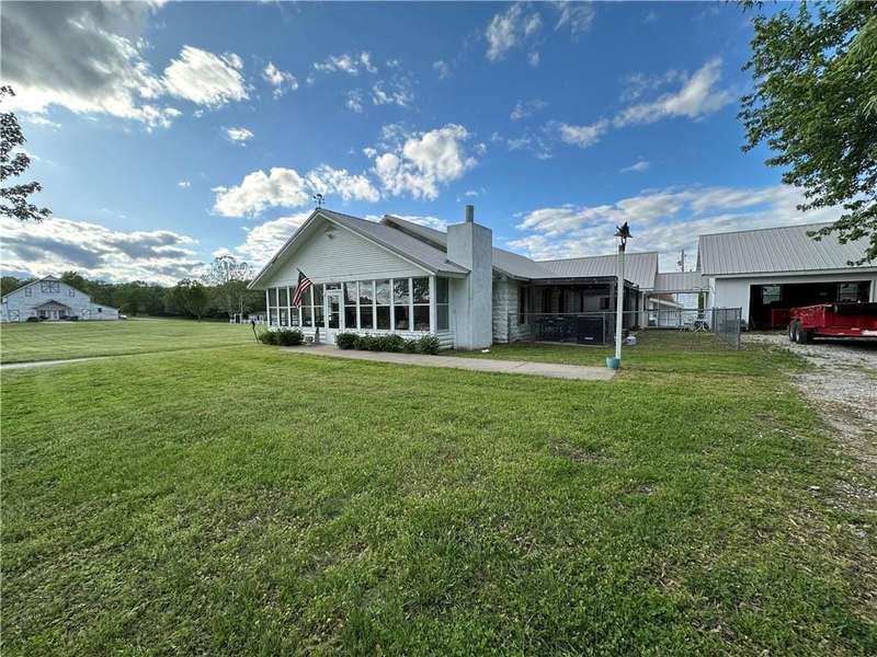 Welcome to Top of the World! Featuring 4 Seperate Living Spaces and Venue on this Sprawling 50+ acre estate nestled ontop of a bluff overlooking the arm of the Osage River and the town of Osceola. The event space offers a multitude of options from weddings, prom for the local school, men and womens retreats, cattleman's association dinner, baby showers, family reunions and more! The main home is 3 Bedrooms, 2 Baths with Great Room that is just that! Small House just on the back side of the main home, is 1 Bedroom 1 bath,with original ice house attached. Cabin 2 is 40x16 built in 2017 2 Bedrooms, 1 bath with side deck. Cabin 1 is 2 Bedrooms 1 bath with covered wrap around partial covered deck over pond . Venue has full kitchen, washer/dryers, storage, mens bathroom with 2 stalls, womens bathroom with 2 stalls, dressing agreas from men/women. Large covered patio and deck overlooking stocked pond. The property has Artesian well that provides the pond with fresh water. The main home has a 2 car detached garage that connects with breezeway. There are mulitple buildings on the property for storage and more.