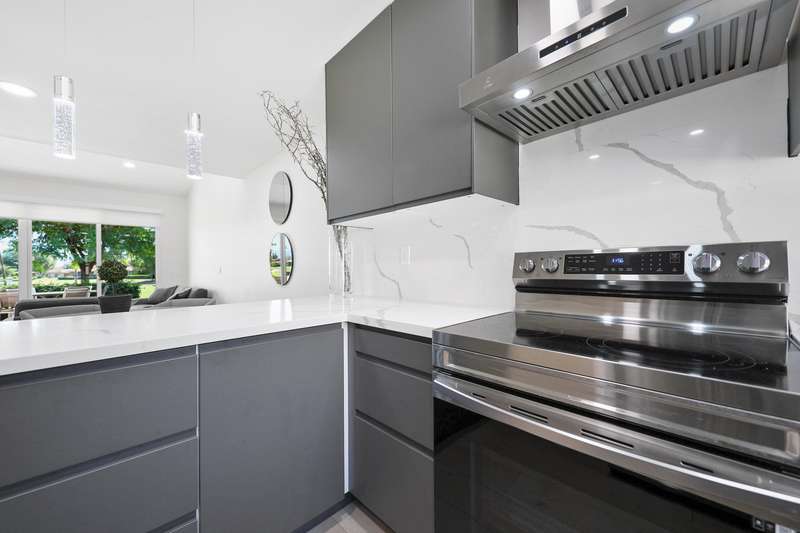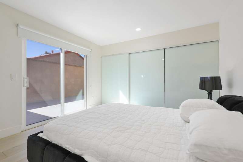 Step into style and comfort in this beautifully updated home, where every detail has been thoughtfully curated for modern living. The fully remodeled kitchen is a showstopper, featuring white quartz countertops, sleek modern-contemporary soft-close cabinets and drawers, and high-end finishes that make both everyday meals and entertaining a joy.Both bathrooms exude luxury with floating vanities topped with white quartz, modern soft-close cabinetry, and contemporary fixtures, including updated toilets. The primary bath offers a spa-like retreat with elegant ceramic tile on the shower and walls, complemented by tasteful tile flooring.Enjoy a cohesive, elevated aesthetic throughout the home with modern engineered wood flooring, custom roll-up window treatments, with a blackout shade in the primary bedroom for restful nights. Recessed and dimmable lighting allows you to set the perfect ambiance in every room, while new doors add to the fresh, modern feel.Outdoor spaces are equally refined, with slate tile in both the front courtyard and rear patio, offering durable beauty and low-maintenance style.This spacious condo boasts soaring vaulted ceilings, abundant natural light, and breathtaking views with mountains in the front and sweeping golf course vistas from the back patio.Experience the best of desert living at Sunrise Country Club, an iconic gated community in the heart of Rancho Mirage. Tucked away in the scenic Coachella Valley, this peaceful enclave blends luxury and natural beauty with lush landscaping and a picturesque 18-hole executive golf course.Residents enjoy access to 21 pools, 19 spas, 9 tennis courts, and active Pickleball and Bocce clubs, along with a newly renovated fitness center, clubhouse, and dining room. Whether you're indulging in a gourmet dinner or a laid-back Sunday brunch, the stylish Mixx Lounge offers the perfect setting.This move-in-ready home blends form and function, ideal for buyers seeking contemporary design, comfort, and convenience. Don't miss your chance to own this tastefully upgraded gem!