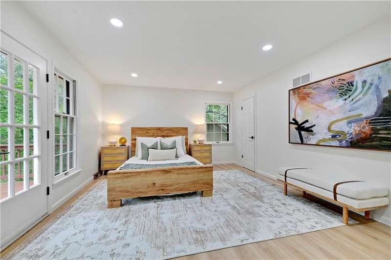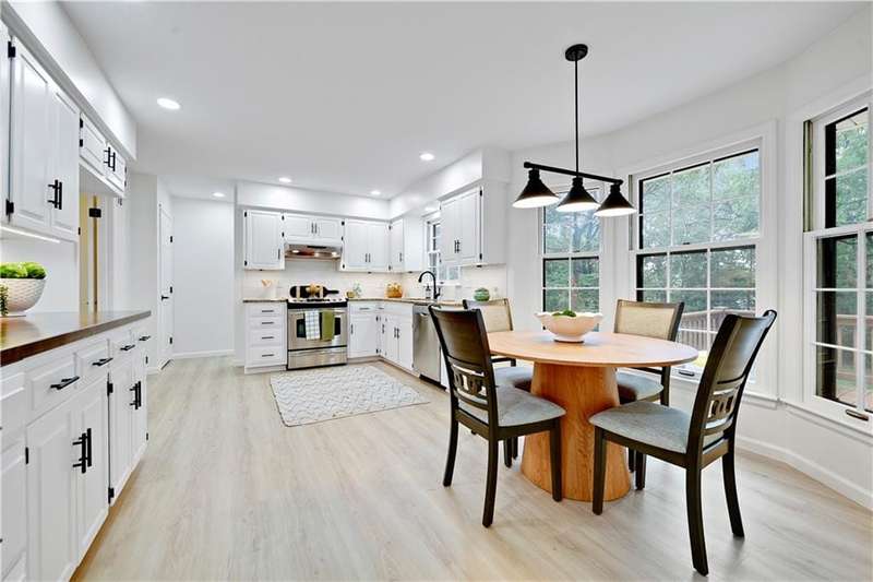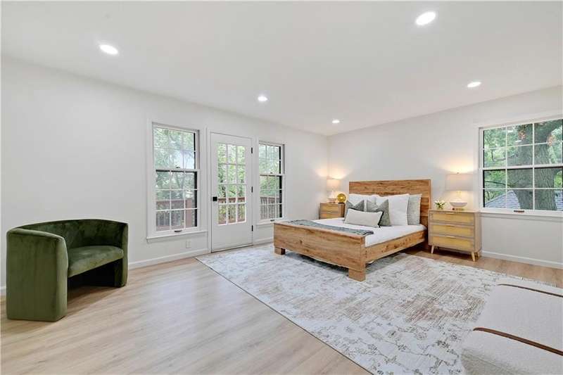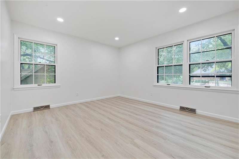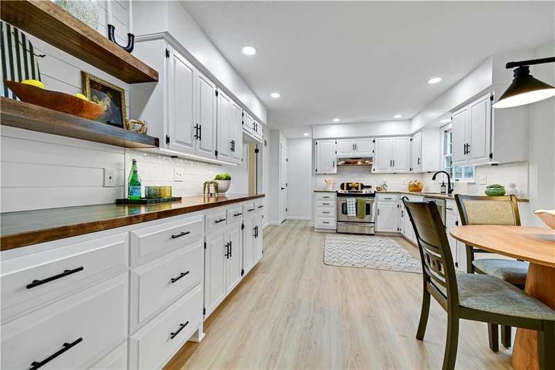 UPDATED to perfection! Nestled on a 1/2 acre beautiful, treed lot, this stunning remodel offers the convenience of one level living along with the flexibility of two additional bedrooms on the second level and a large finished basement. The new light wood floors span the entire main level including the Primary Suite and Second Bedroom/Office. The freshly painted walls and trim are accented by gorgeous new wainscotting. You are going to love every inch of this beauty. And did I mention the Kitchen? White cabinets, white tile backsplash and floating wood shelves, make it as beautiful as it is functional. You'll enjoy the convenience of a second main level Bedroom or Office along with a gorgeous Primary Suite that walks out to the deck overlooking the lush, private backyard. The lower level walkout offers tremendous space for fun & games...all freshly painted with new luxury vinyl plank floors. All of this and a beautiful neighborhood to boot. Situated on the rolling, wooded hills of Shawnee. As you turn into Quivira Highlands, you will think you drove into Colorado. Pure perfection in all aspects!