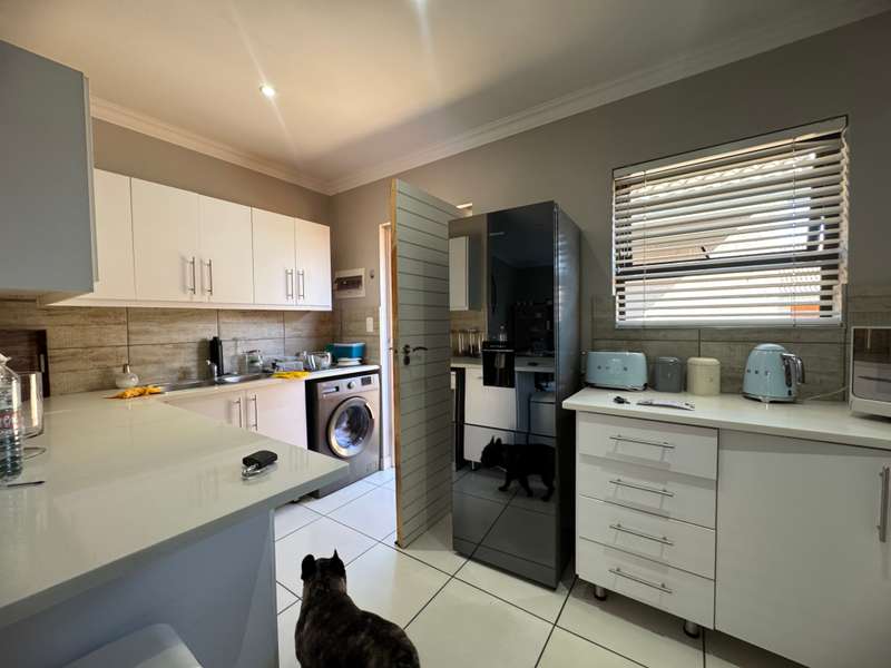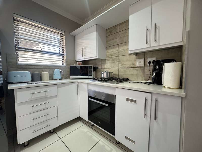 This stylish and secure 2-bedroom unit is designed for comfortable, modern living. The open-plan layout seamlessly integrates the kitchen, dining area, and TV room, creating a spacious and inviting atmosphere. The contemporary kitchen is well-equipped with a gas stove and an electric oven, perfect for those who love to cook. Both bedrooms feature built-in cupboards and blinds, with sleek tiled flooring throughout the home. The main bedroom has its own en-suite bathroom, while the second bathroom serves both guests and the additional bedroom. A convenient linen cupboard in the passage provides extra storage space. Enjoy indoor-outdoor living with a sliding door that leads from the living area to a private garden and a cozy patio, perfect for relaxing or entertaining guests. The unit is fully walled, ensuring privacy and security. Parking is a breeze with two automated garages and an additional visitor’s parking space. Whether you're a single professional or a young couple looking for a modern and low-maintenance home, this unit is a perfect fit. With a great potential rental income of R8 500p.m. Call Annette Kasselman today for a viewing.