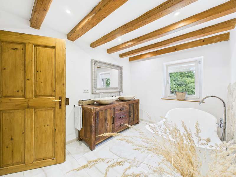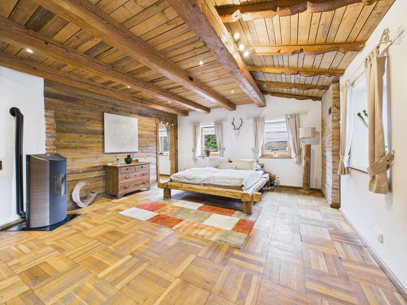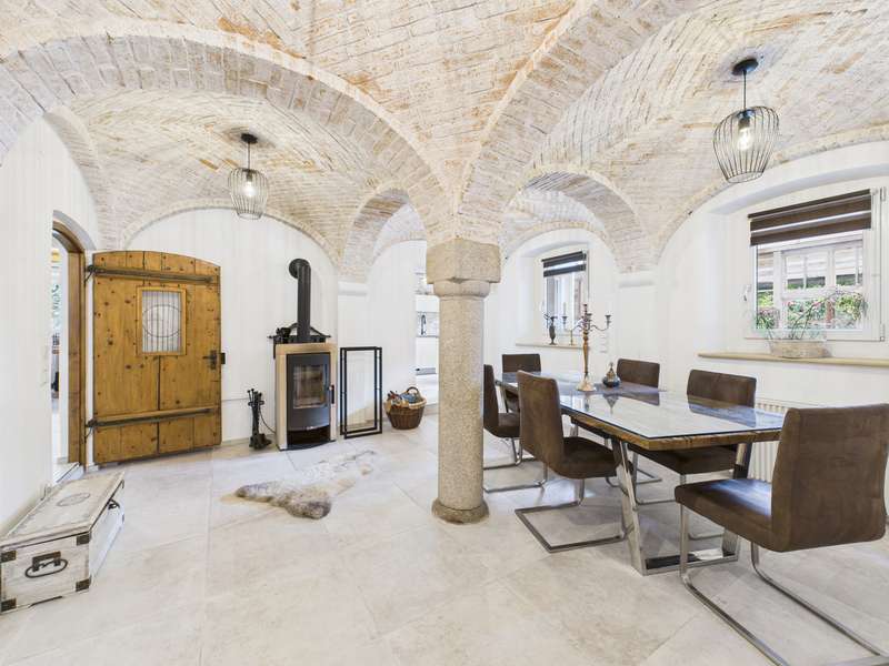 Two generations under one roof - a historical gem with modern comfort and an idyllic garden This lovingly renovated farmhouse dating back to 1863 combines historic charm with state-of-the-art technology and well thought-out living quality. With around 332 m² of living space, the solidly built two-family house offers space for two independent residential units - ideal for multi-generational living, living & renting or living & working. The spacious main apartment extends over approx. 255 m² on two floors. High-quality materials such as real wood parquet, Italian tiles, restored doors from the 9th century and some Sollnhof marble create a stylish living ambience with character. A fireplace in the living area provides cozy warmth. The separate granny apartment with around 85 m² is currently rented for € 700 (plus garden share) - a solid source of income. The property stands on a fantastic 1,761 m² leasehold plot (interest only € 609/year until 2098) with above-average facilities: conservatory with watercourse and fireplace, pavilion, garden house with sun terrace and whirlpool, fireplace, workshop, orchard, old trees, courtyard garden - a paradise for nature lovers. The house boasts impressive technical features such as wood pellet heating, hot water heating via heat pump, PV system (10 kWp + storage, 2022), water softening system, gas connection option and much more. The extensive modernizations of recent years (including roof, windows, carport, fitted kitchen) guarantee contemporary living comfort with historical substance. A real collector's item for people who demand space, quality and atmosphere - rare, special, ready to move into. You are welcome to take a 360-degree tour to get a first impression of the property: https://tour.giraffe360.com/97551cb9ccc740799d480389c48f6d1f/ Arrange your viewing appointment now!